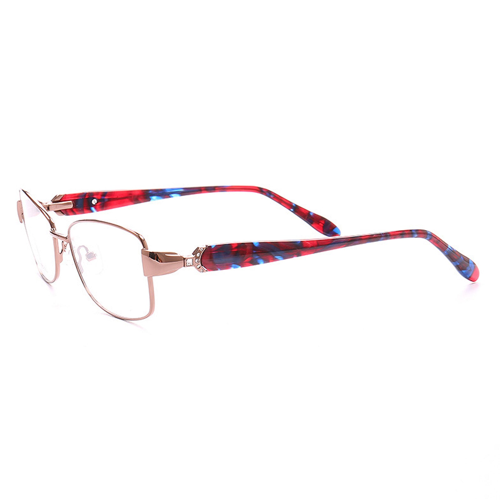 Glasses are not only spectacles to help you correct your eyesight. but also an expression of your taste and style. Abigail is an attractive frame with rich colors on its temples. adding a touch of intrigue to the classic rectangular metal frame. It can boost your mood and brighten your day while you wear them.