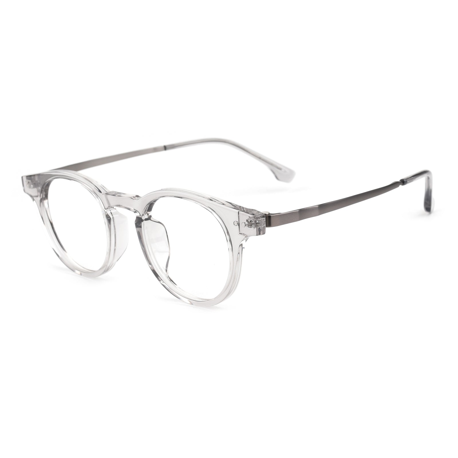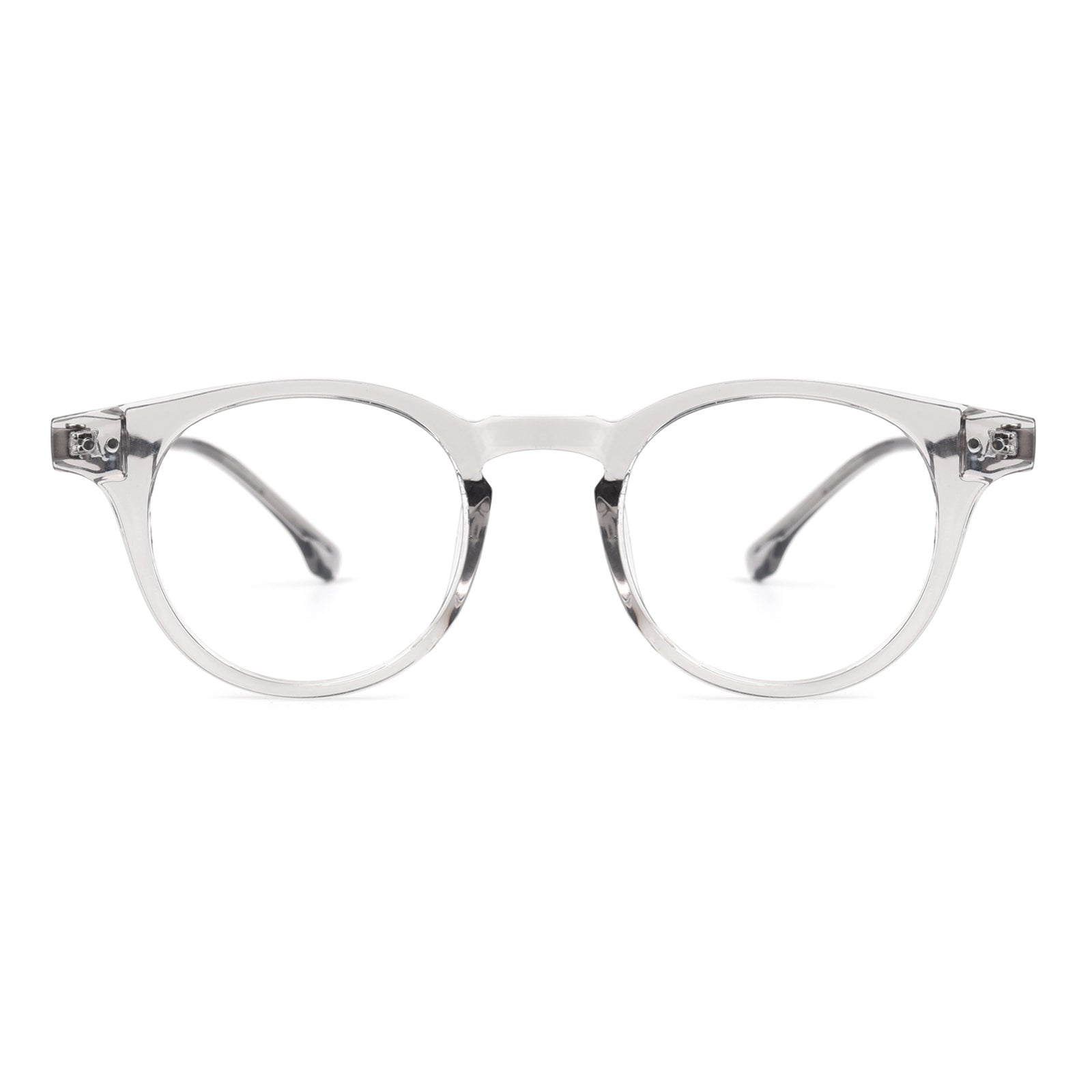 Fashionable round eyeglass frames featuring a classic shape and exceptional quality. Designed with durable metal temples and a Universal Bridge Fit. these frames combine timeless style with comfort and versatility for a wide range of wearers.