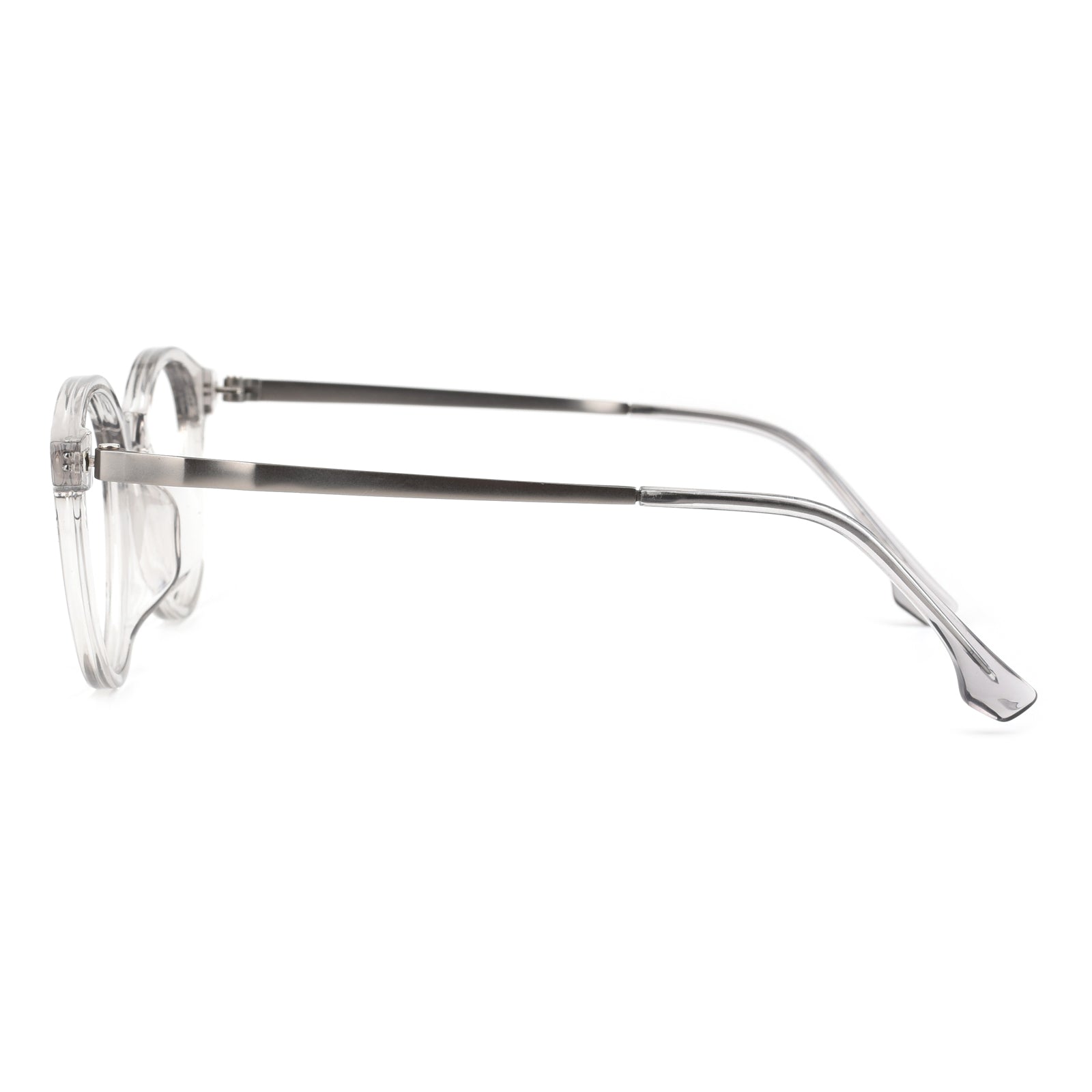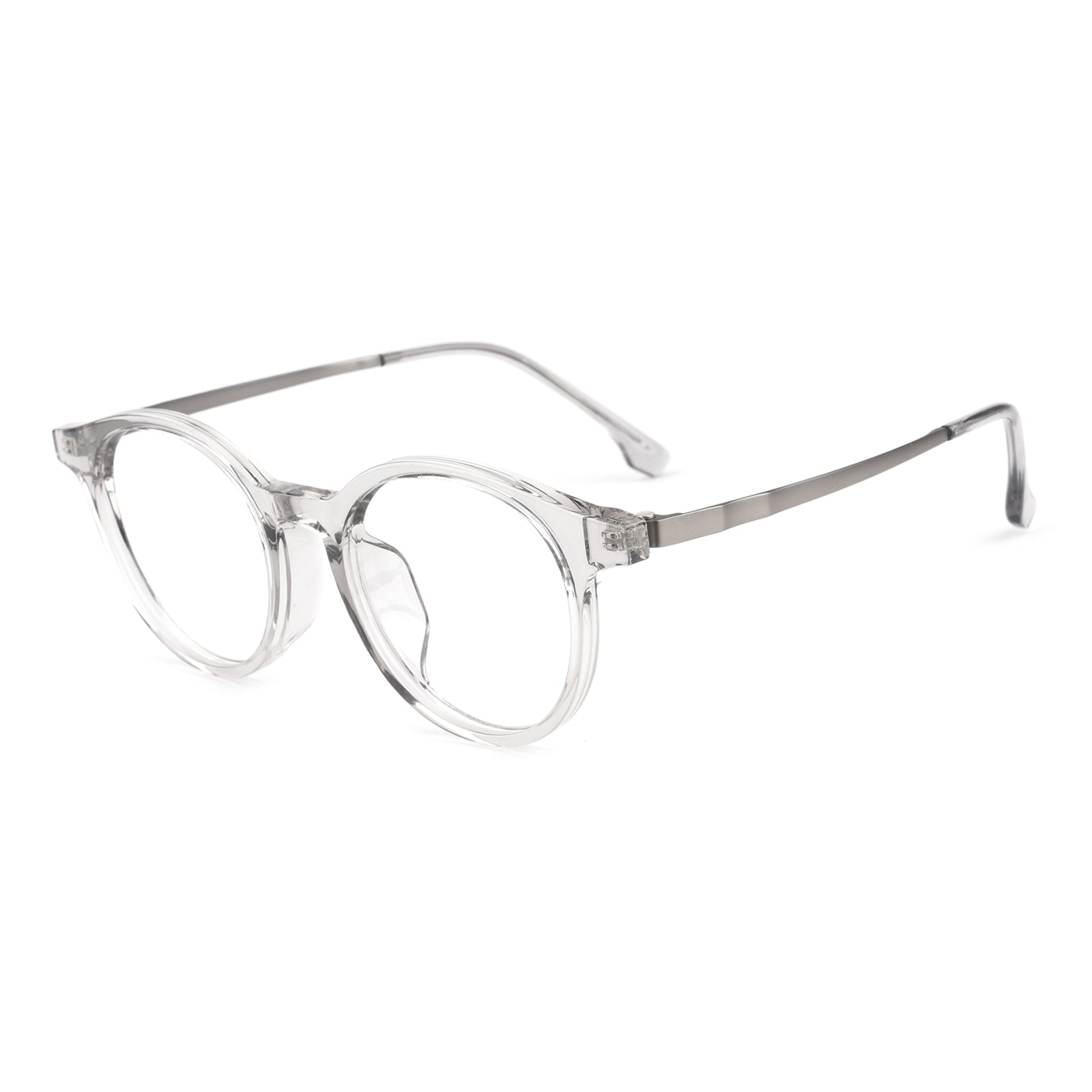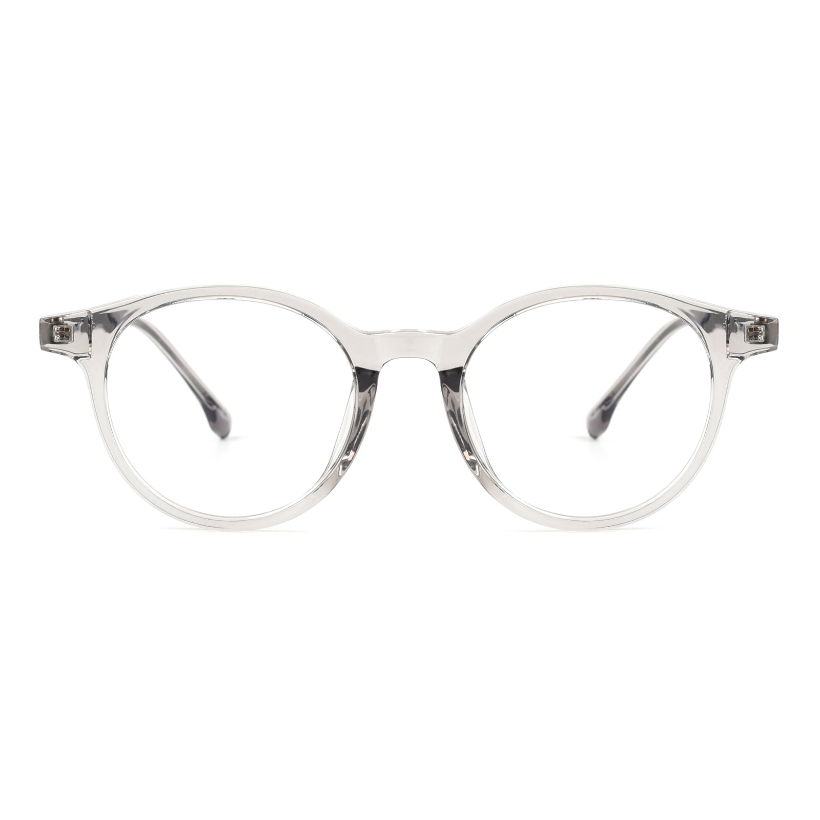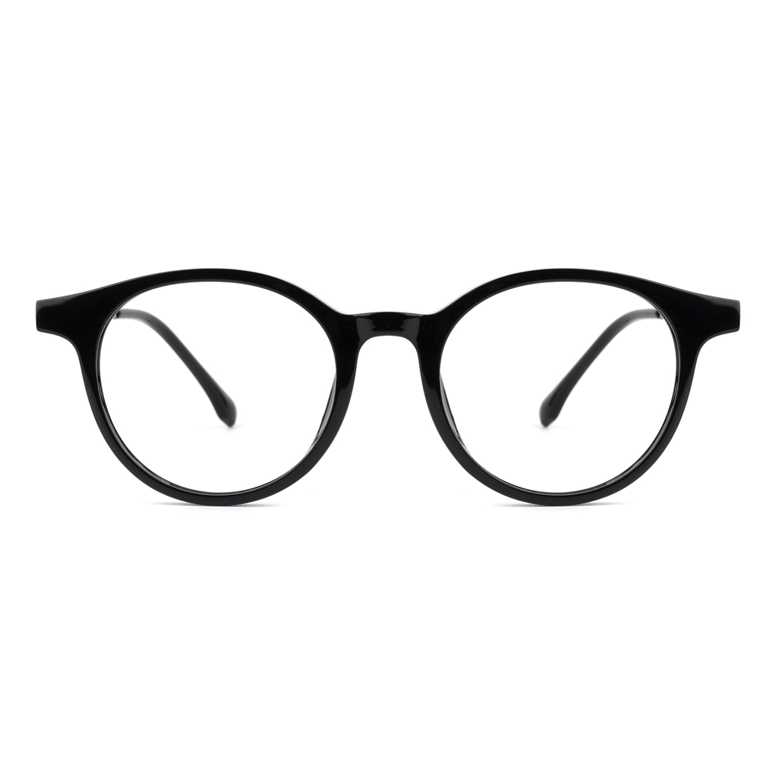 Fashionable round eyeglass frames featuring a classic shape and exceptional quality. Designed with durable metal temples and a Universal Bridge Fit. these frames combine timeless style with comfort and versatility for a wide range of wearers.