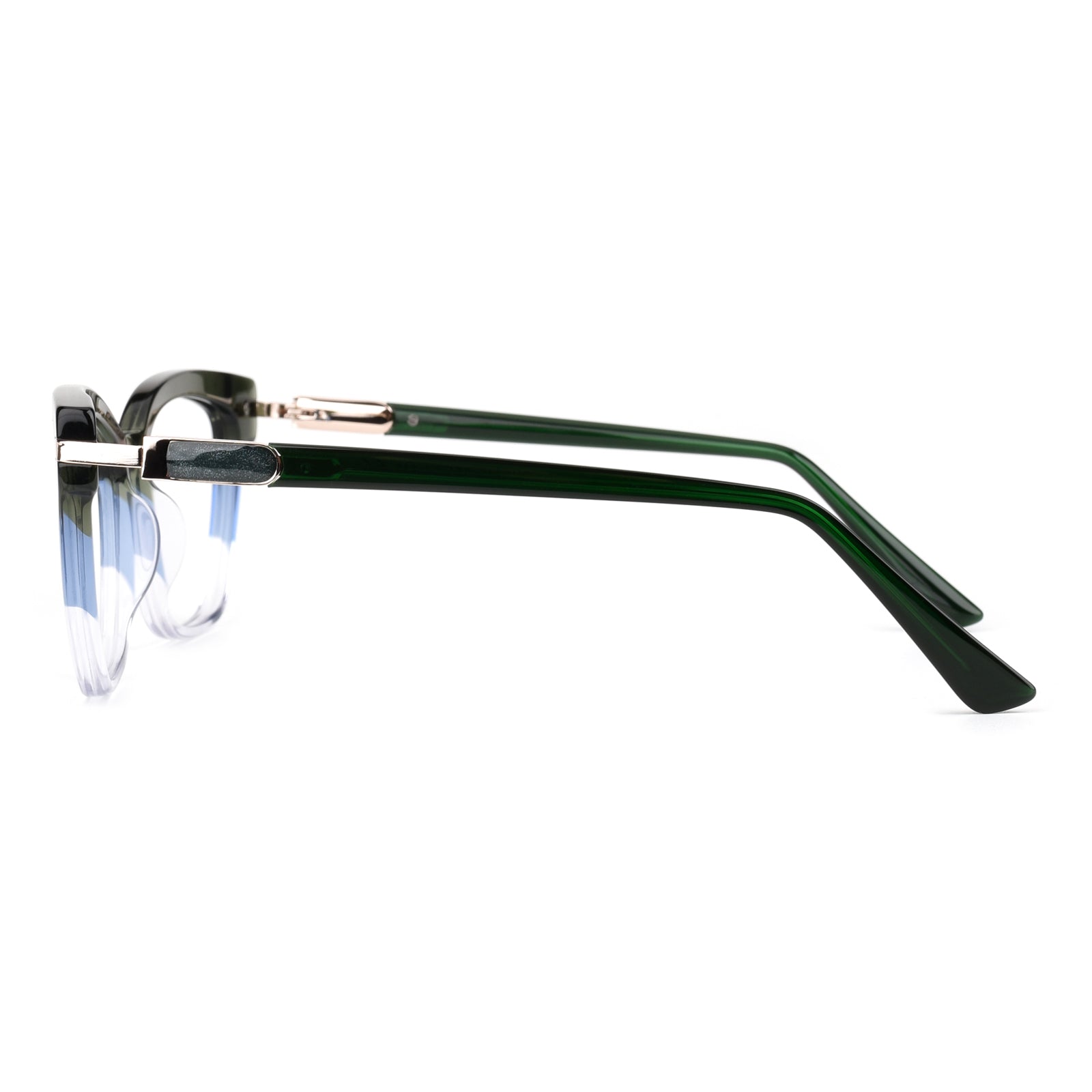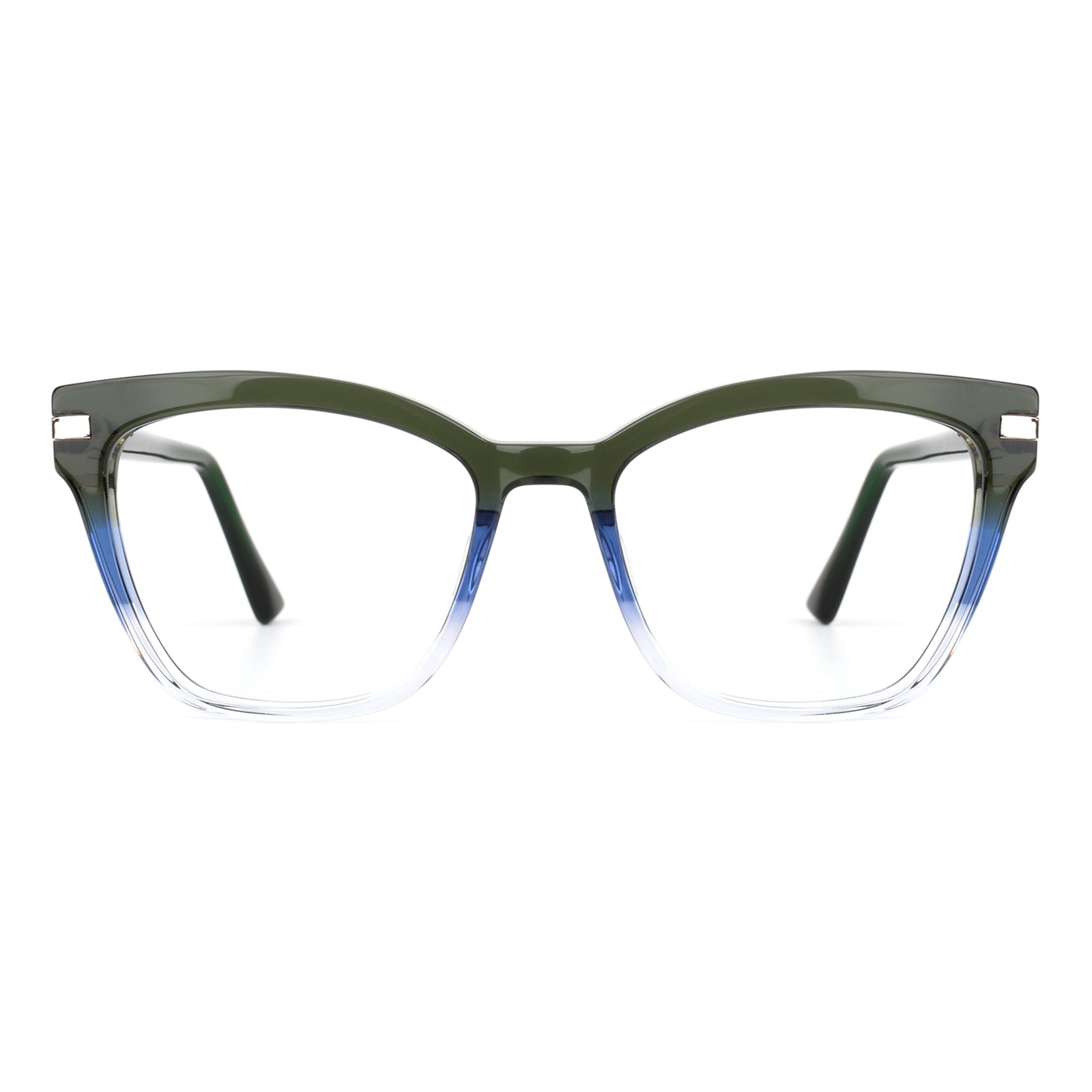Large-frame eyeglasses with a modern green gradient design. Stylish and contemporary. these frames provide a bold. fashionable look while ensuring comfort and durability for everyday wear.