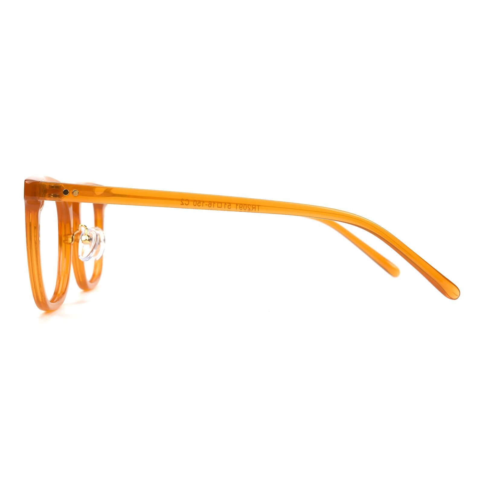 Give your look a warm touch with soft neutrals. These round glasses feature TR90 rims with a glossy finish in the following colors: taupe (translucent brownish gray) .black.clear and light orange(with tortoise temple arms). The bridge and flexible temple arms are metal with a shiny finish. This is a wide frame.It is also a good choice for sunglasses. The number of the same sunglasses is 19122018