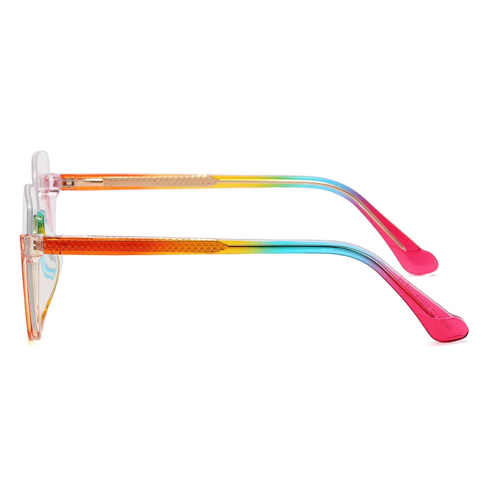 Alana is a semi-rimless oversized frame. available in two colors: rainbow and pink leopard print. Either choice will make your outfit stand out today. leaving a memorable impression.