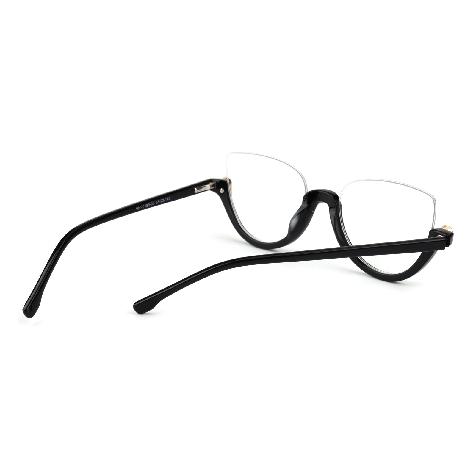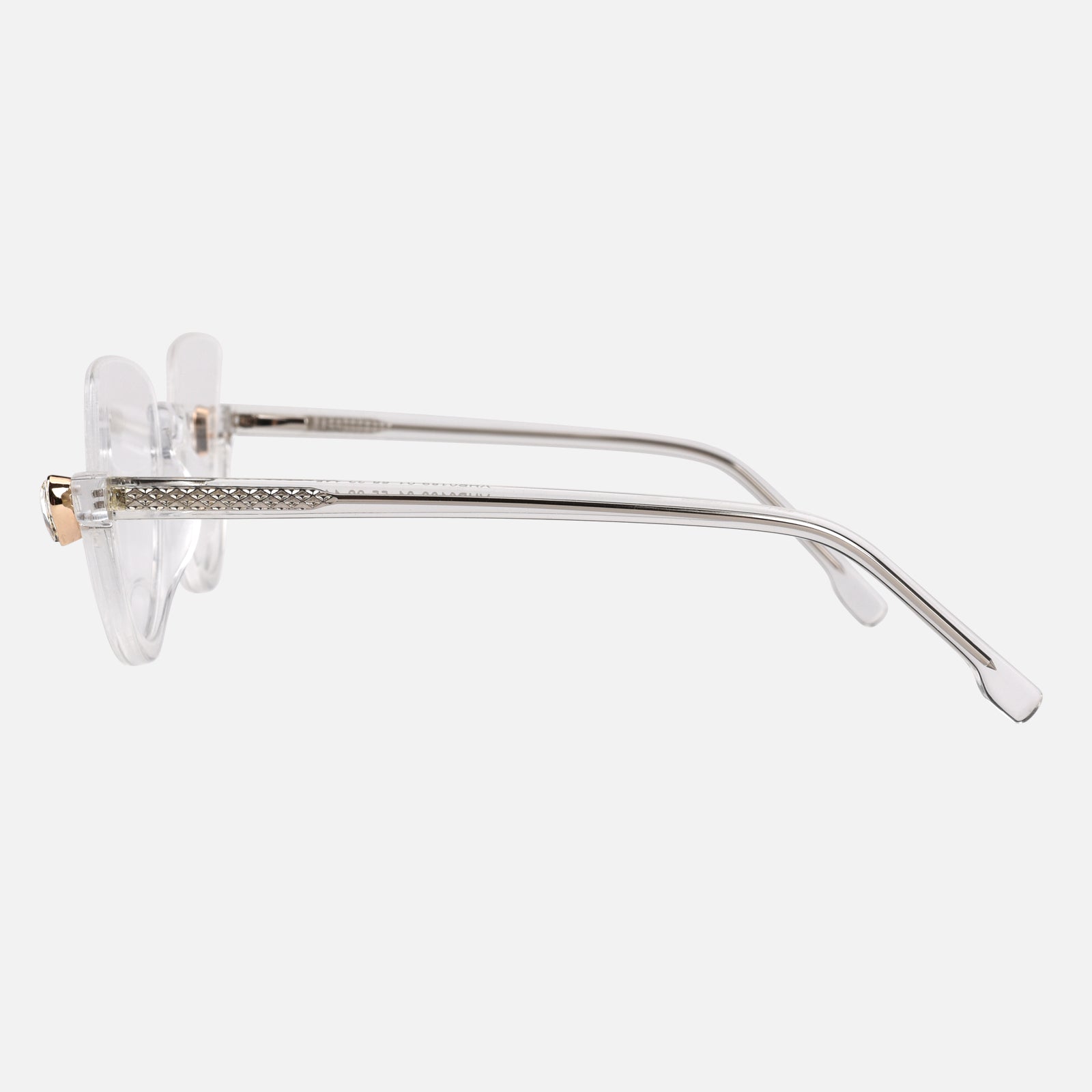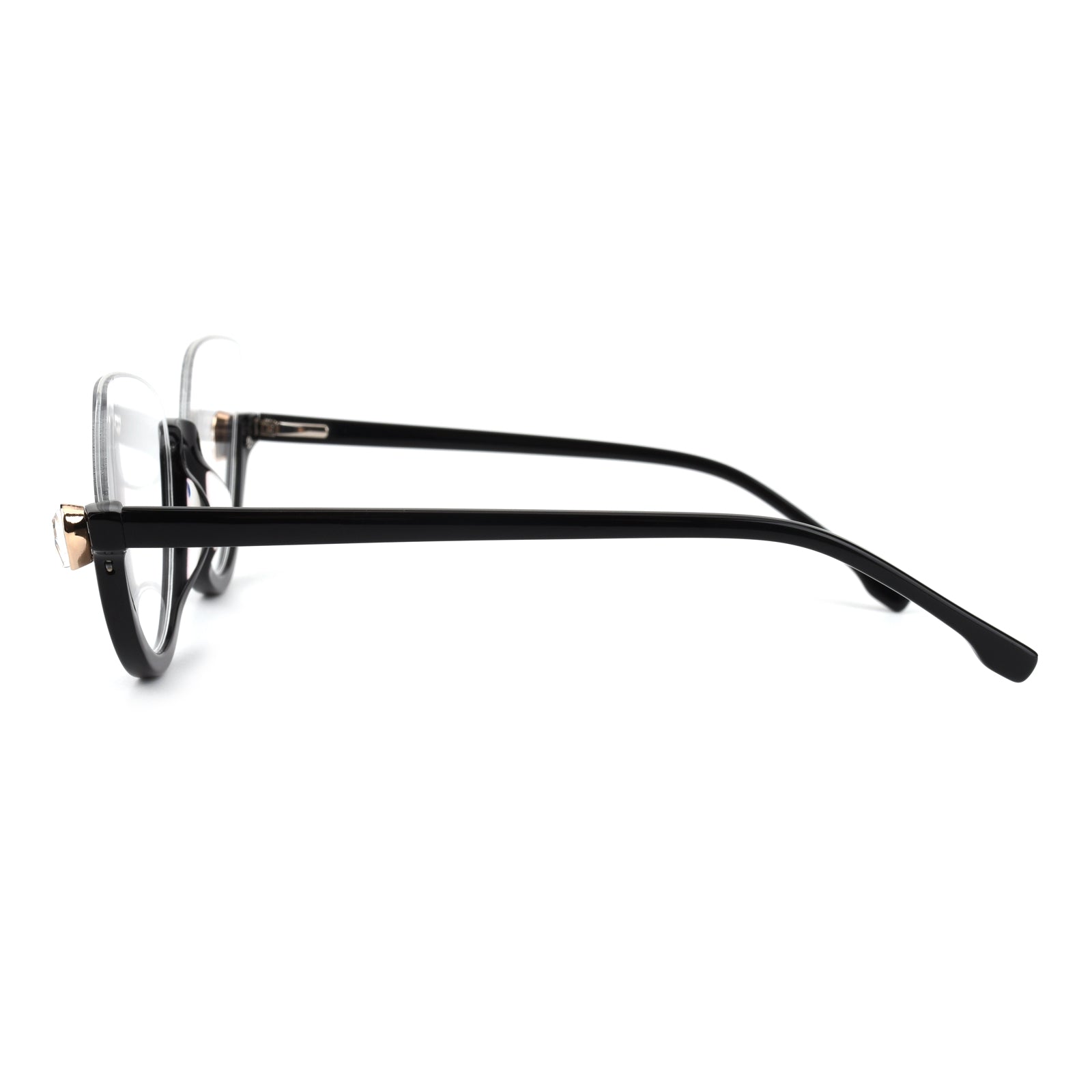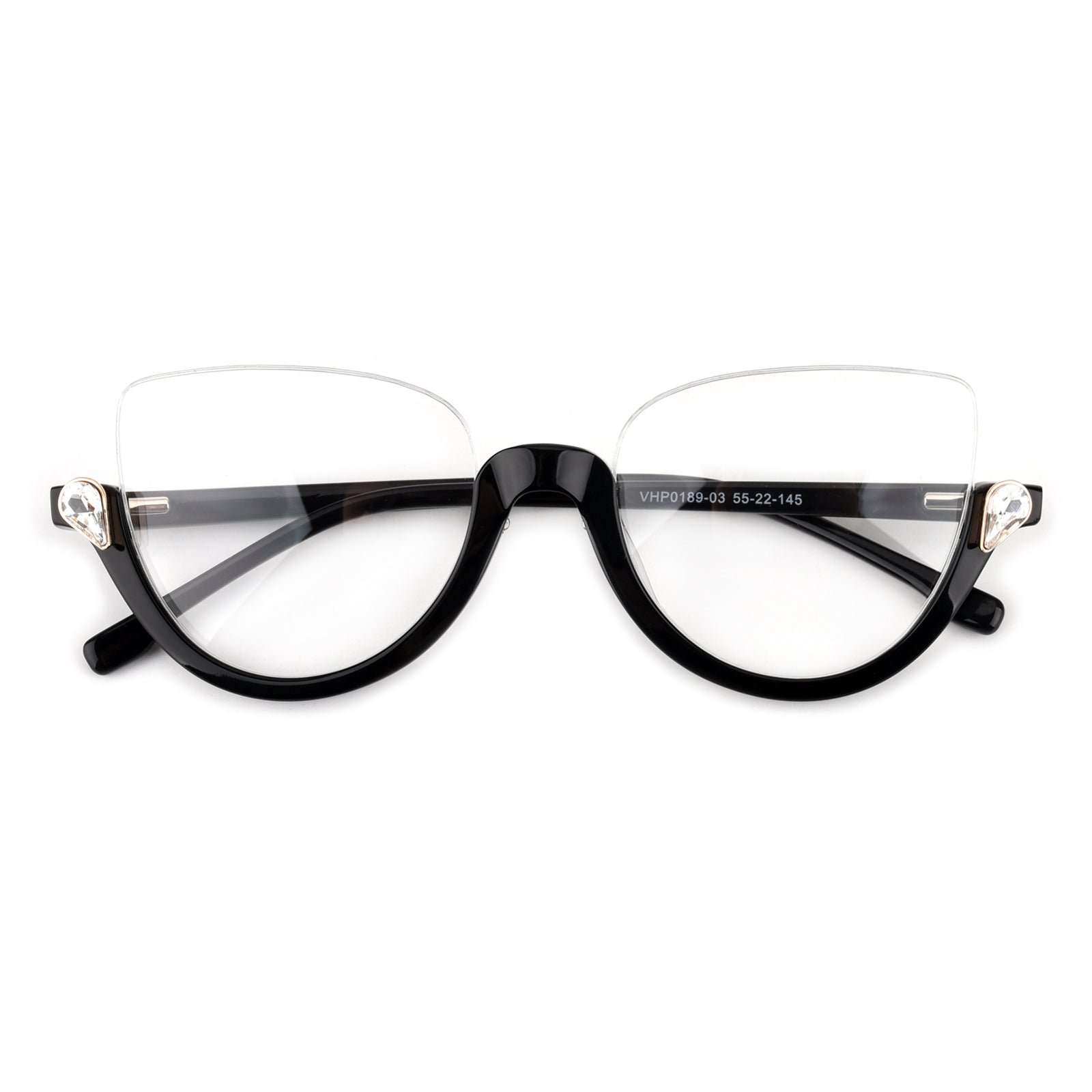 This semi-rimless cat-eye frame features teardrop-shaped rhinestone embellishments on both sides. making it perfect for after-party events. Available in tortoiseshell and transparent colors.