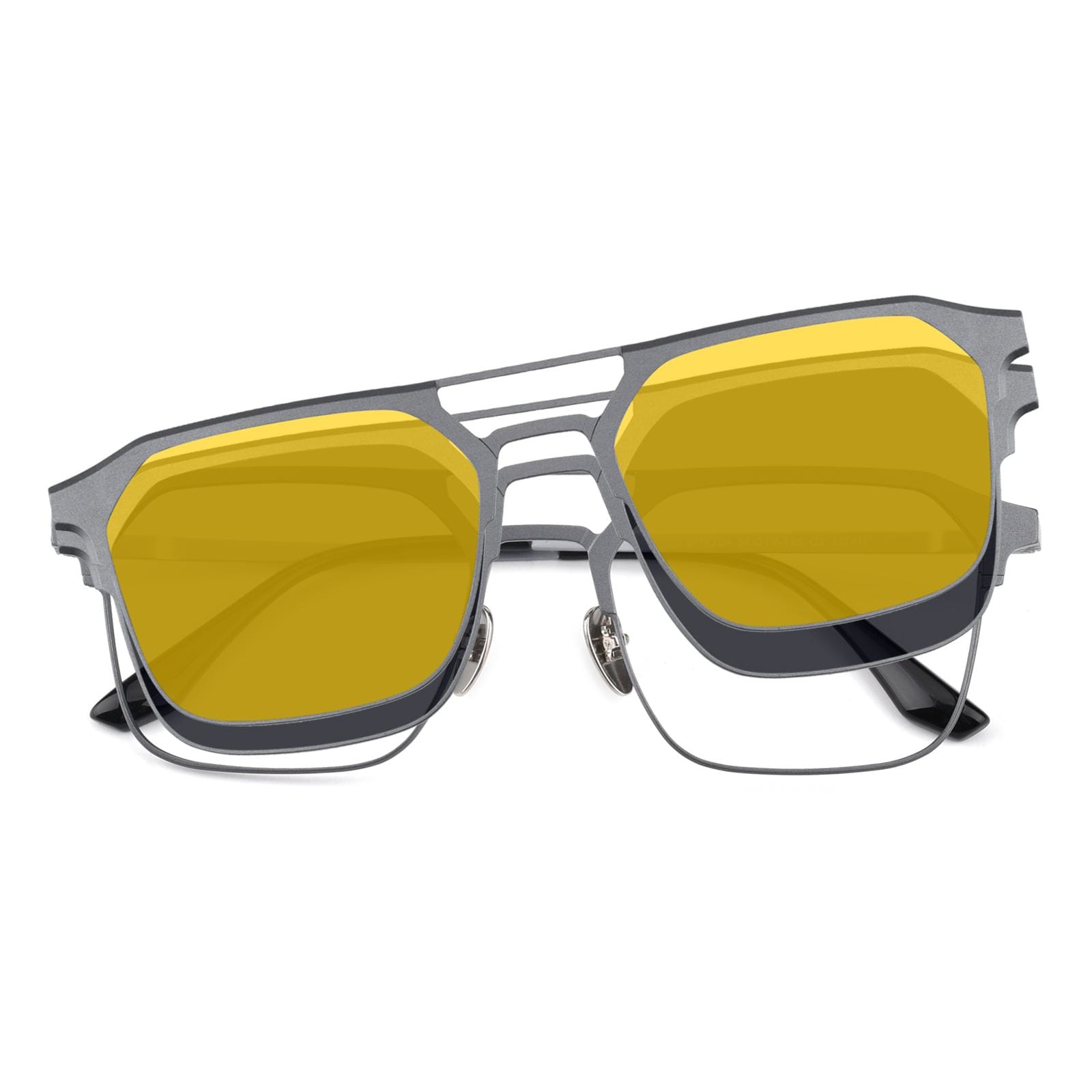 Enhance your eyewear with our Aviator Clip-On Polarized Sunglasses. Transform your regular glasses into stylish shades with magnetic attachments. The polarized lenses reduce glare and shield your eyes from UV rays. Lightweight and durable. these sunglasses offer both fashion and function. elevating your style while protecting your vision.