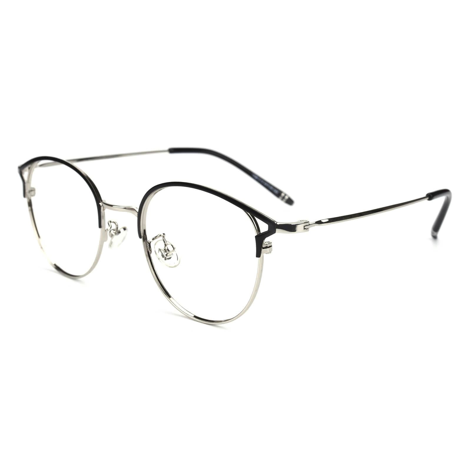 Apply a little whimsy to your eyewear style with these metal cat-eye frames. The wide frame features round lenses with kitty ear accents in the outer corners. It's available in black front rims with gold or silver frames. Adjustable nose pads and temple acetate tips provide added comfort. Classic. timeless and a bit rebellious. the versatile gold or silver frame feels right at home at staff meetings or rock concerts.Show your stylish side with your cat-eye glasses. Made from premium material. these glasses are soft. smooth and durable.