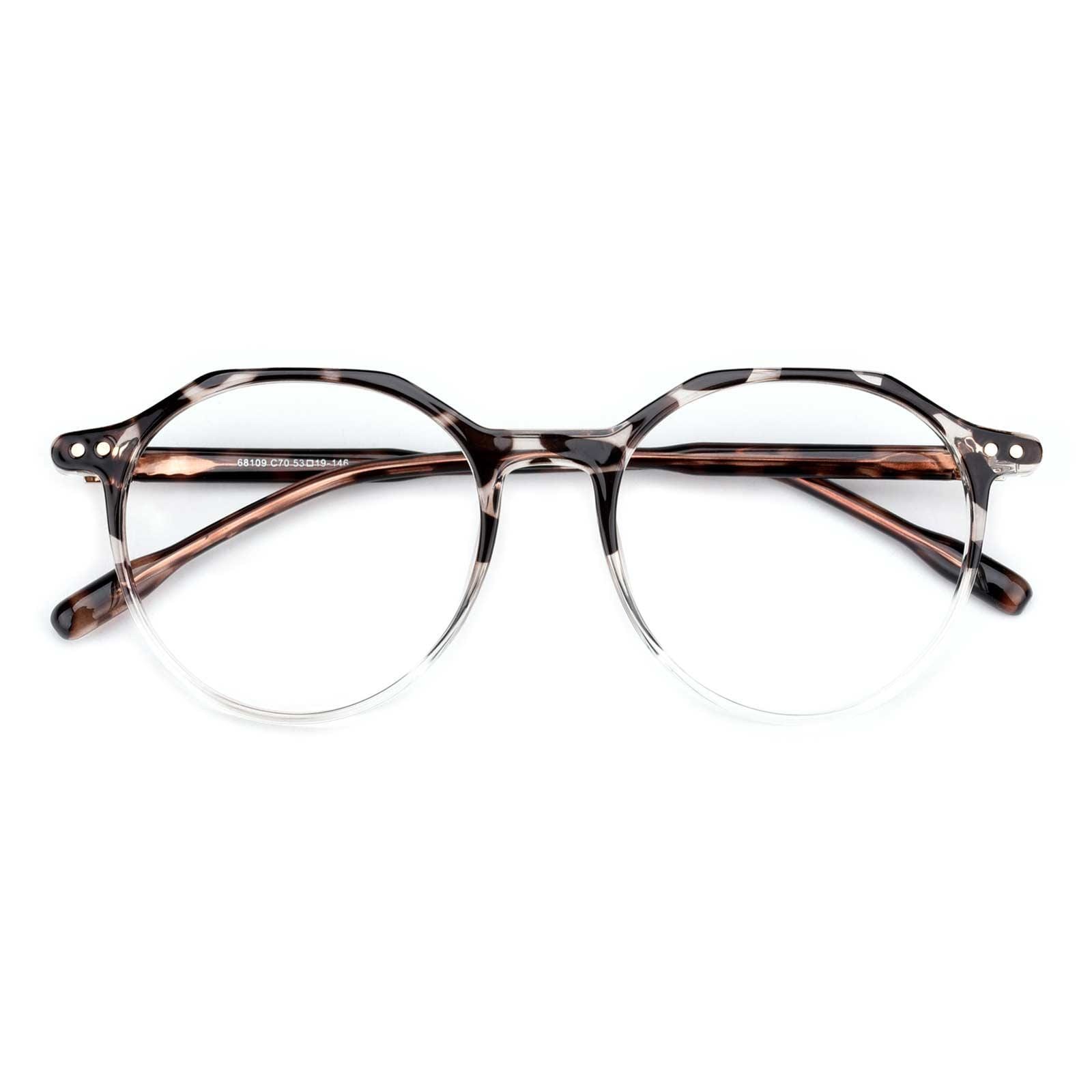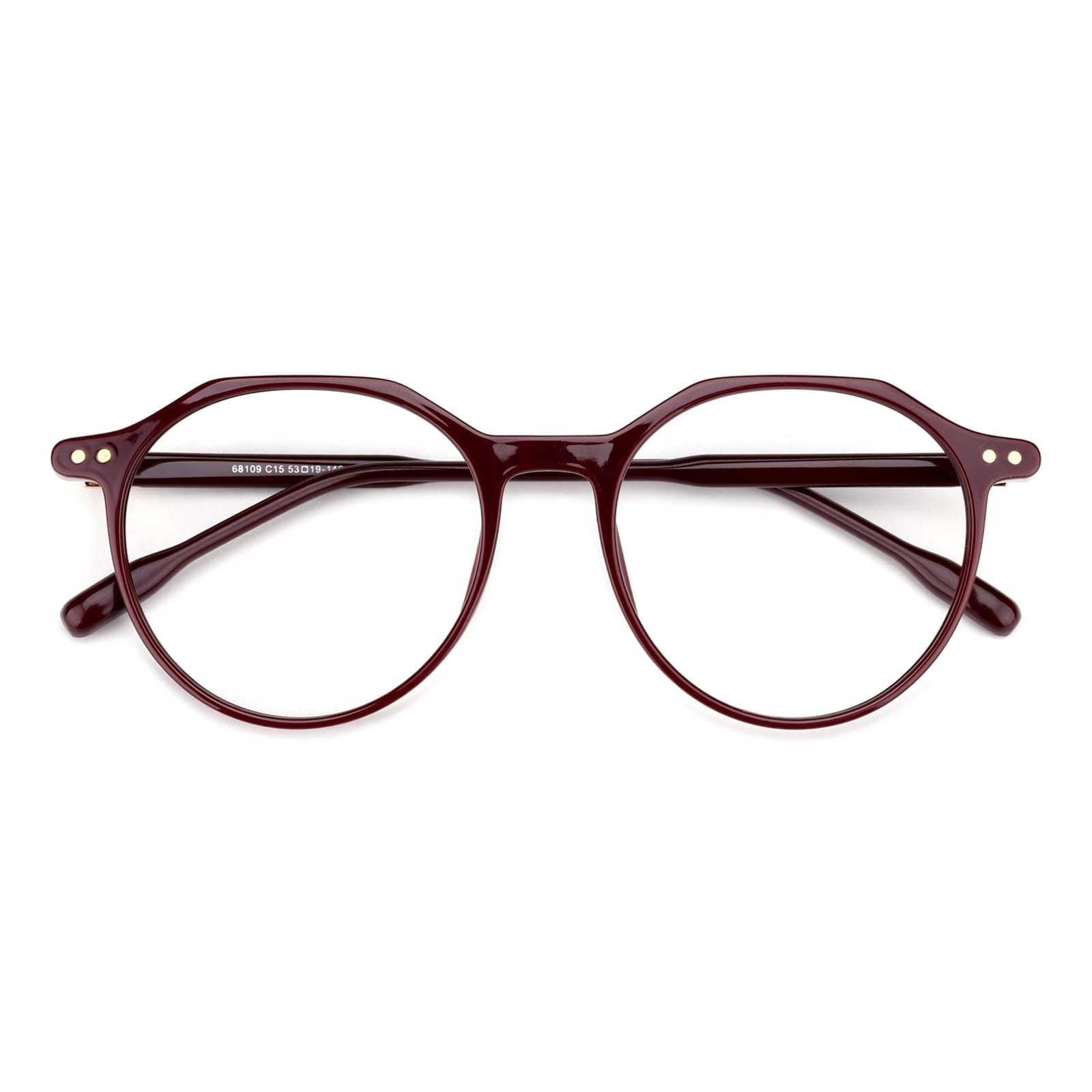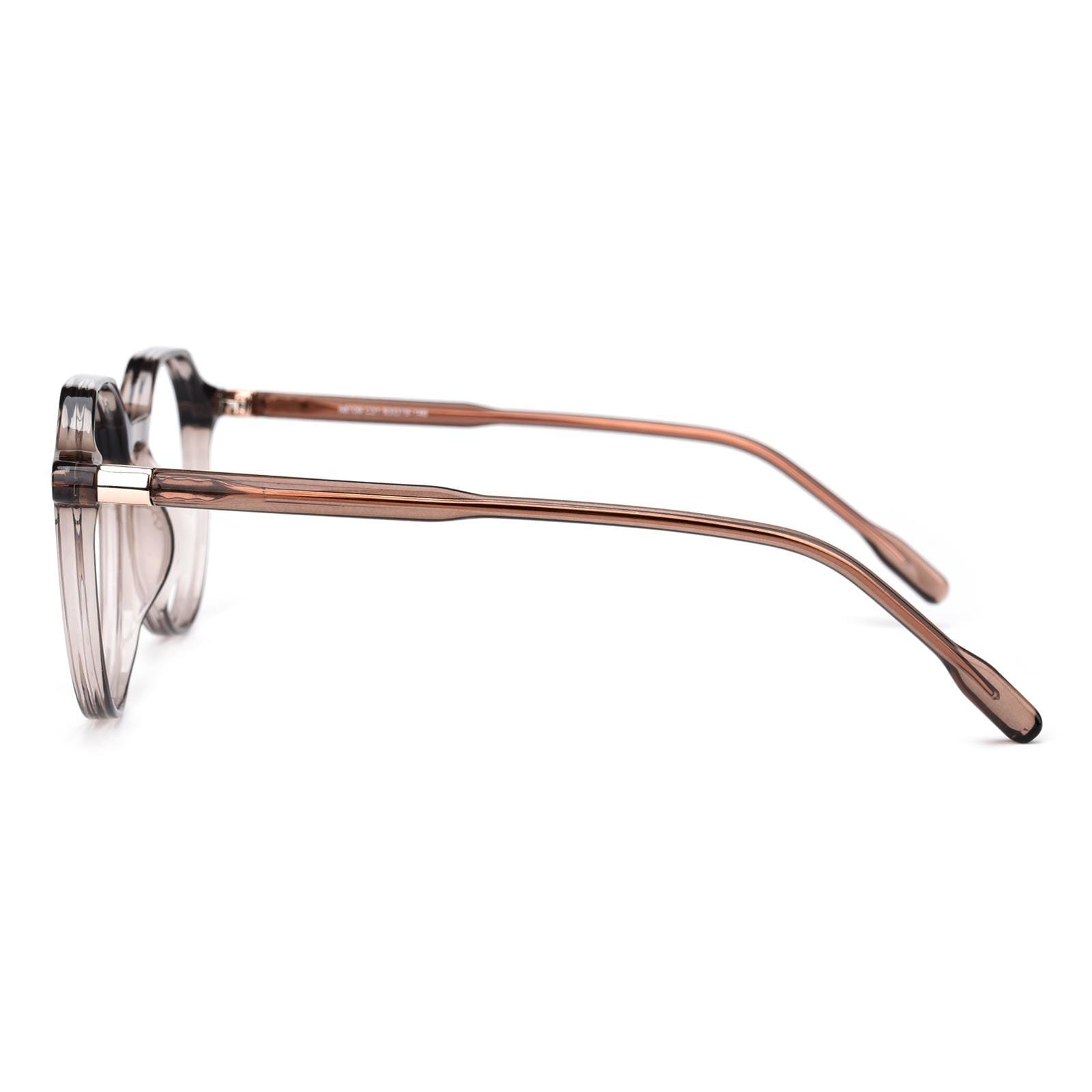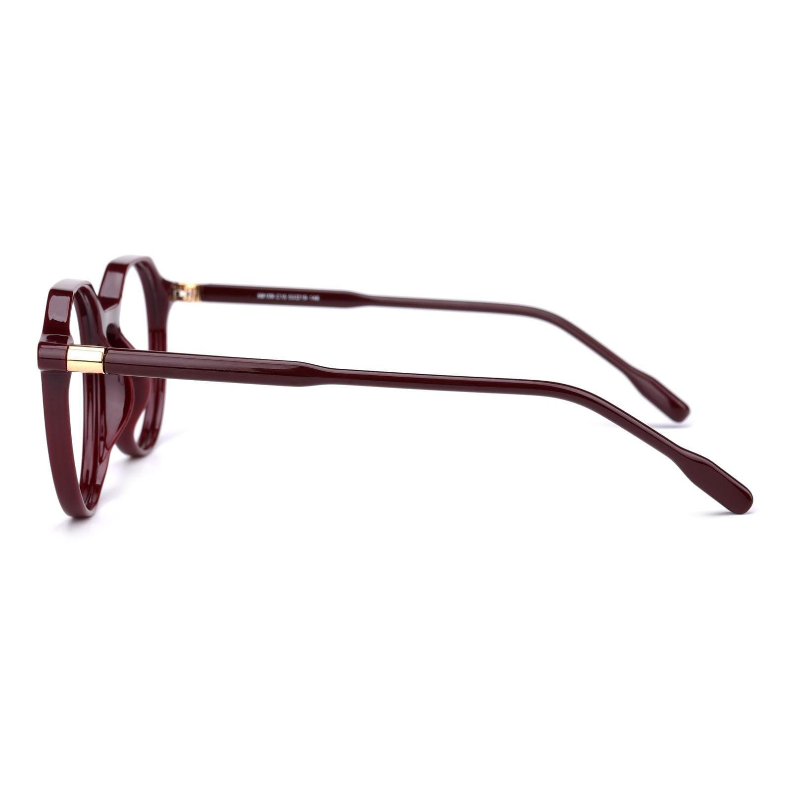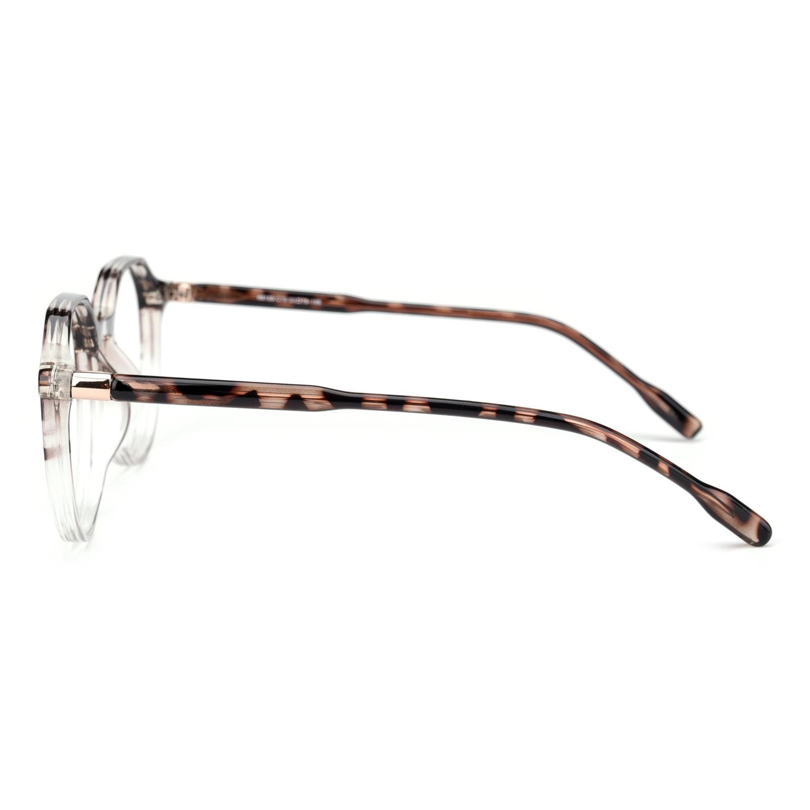 New polygonal round frame glasses designed by Eye City designers. Ideal for everyday wear. Available in four colors. coffee brown. dark red. black & white leopard print and clear.