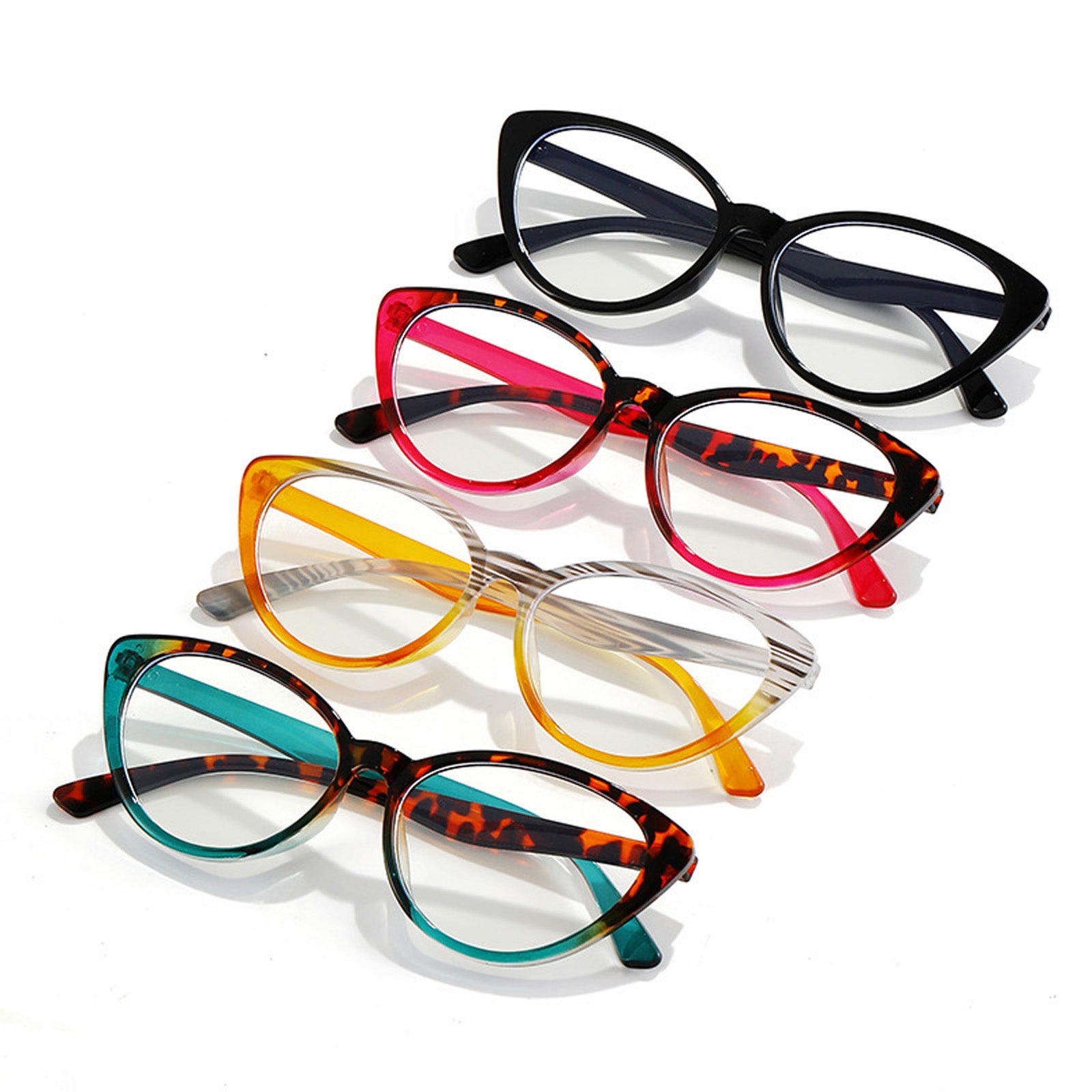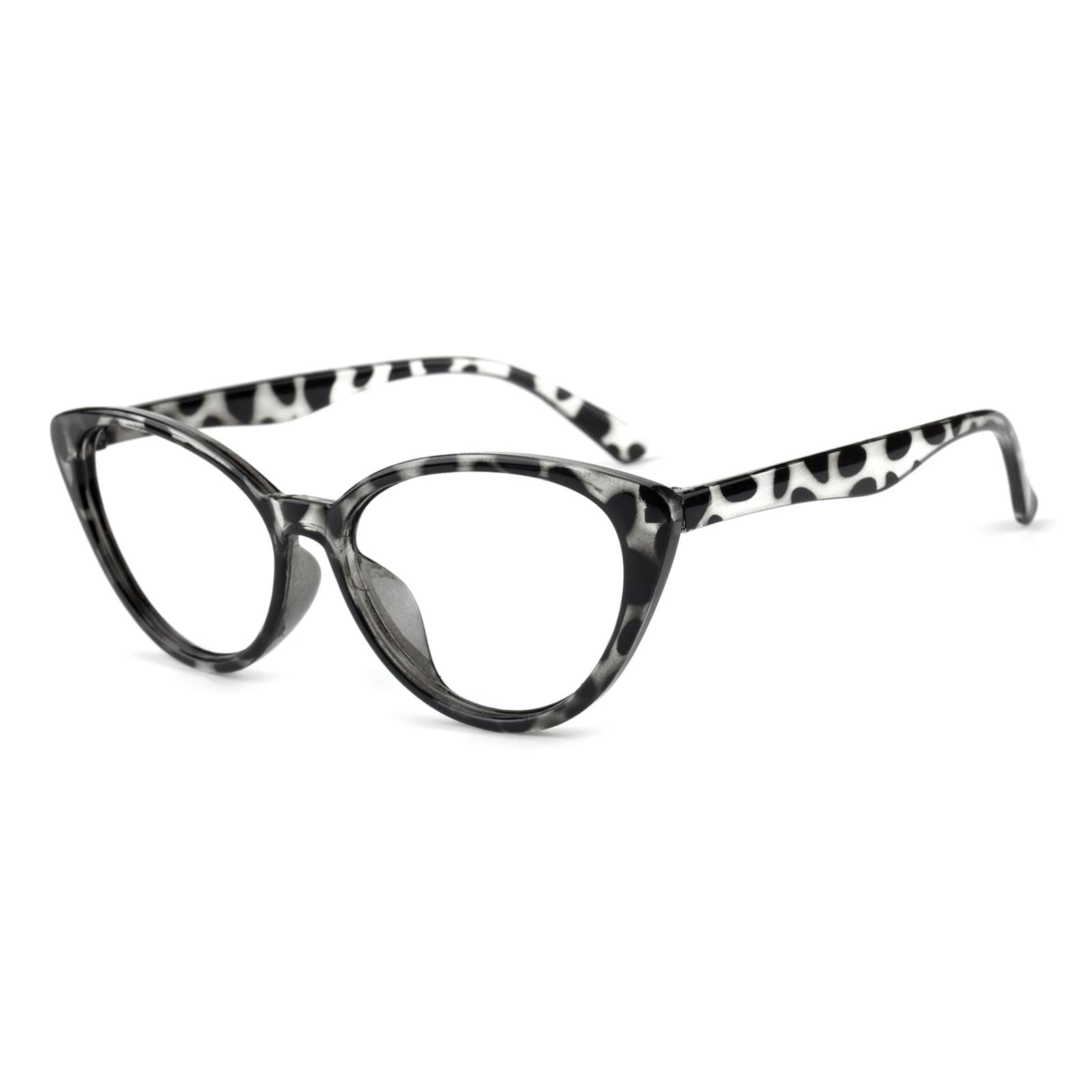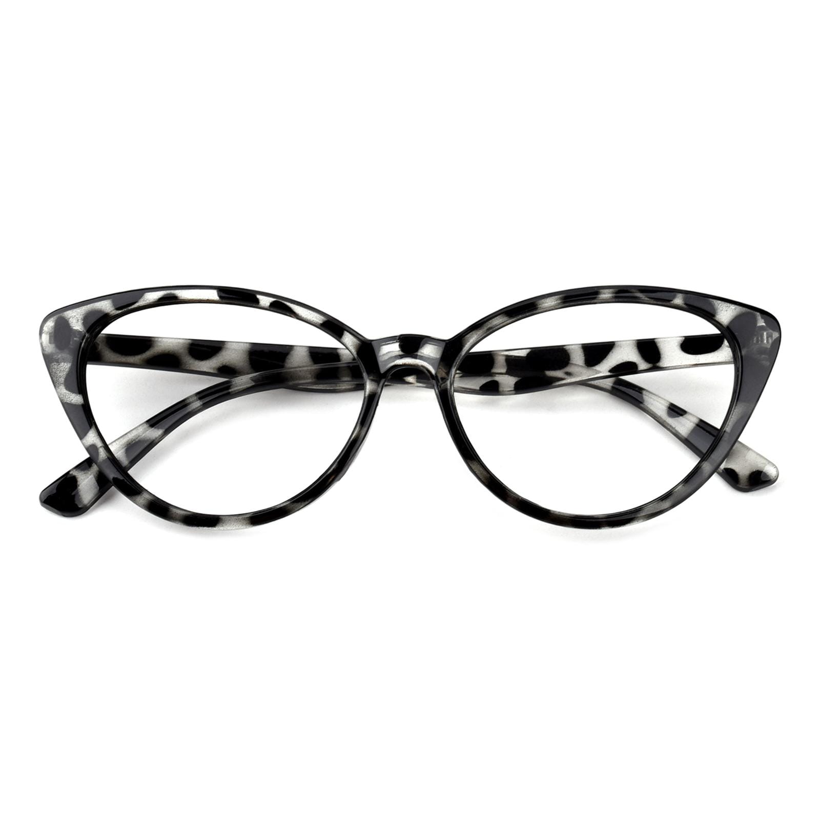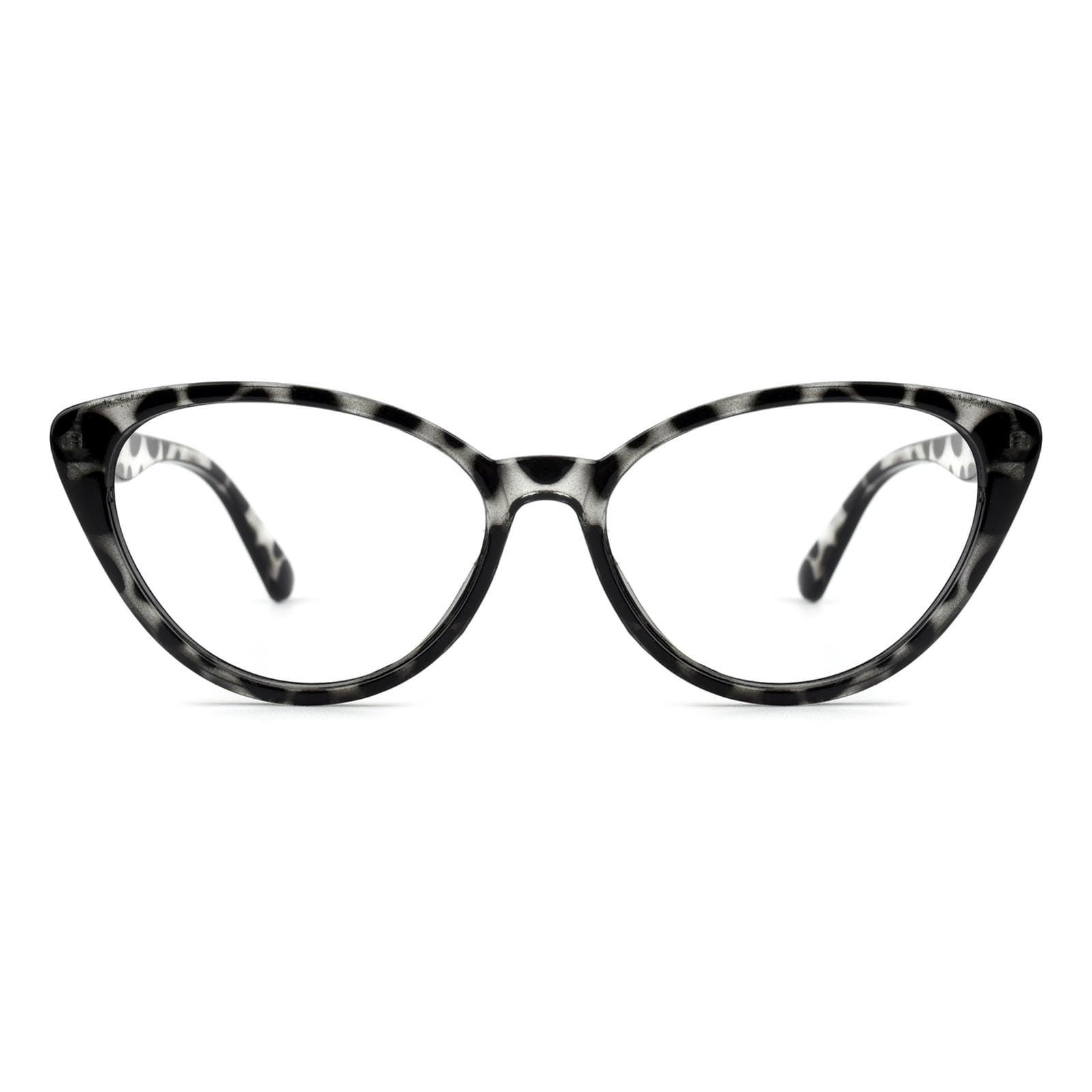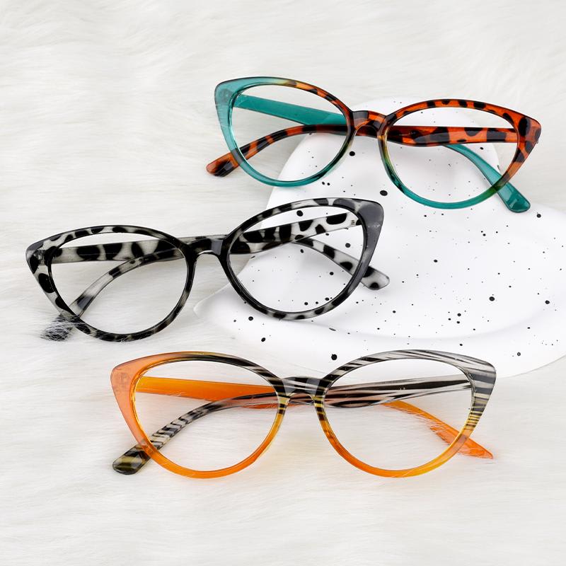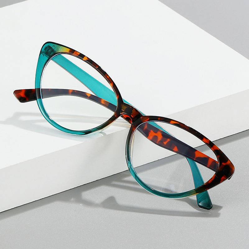 Crafted from lightweight plastic. these frames. at just 13g. guarantee comfort during extended wear. The unique fusion of green and leopard patterns adds a touch of nature-inspired charm. while the cateye shape infuses a vintage allure with modern sophistication. Whether it's work or leisure. 'Clara' promises a stylish and comfortable companion for any occasion.