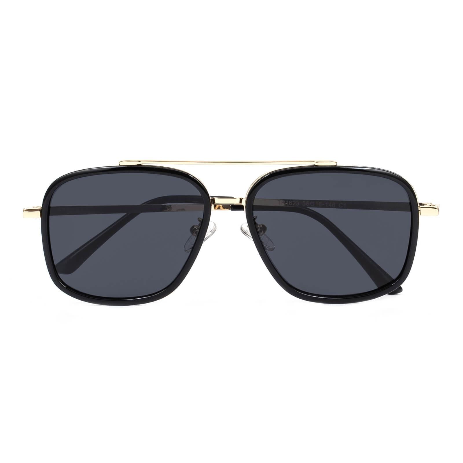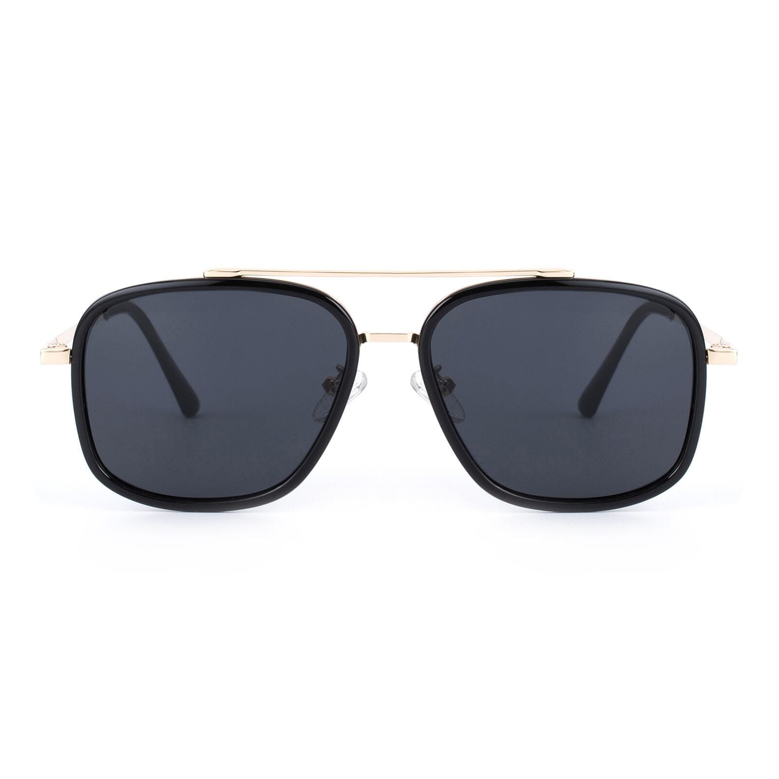 Clinton has a luxurious look and feels with subtly curved lenses. These modern aviator sunglasses have a slightly angular shape with a flat metal brow bar.