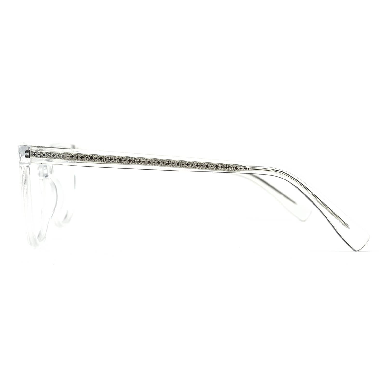 Defeny is a pretty and sophisticated style that will elevate women in any outfit. Made with lightweight acetate. this wide square frame is a great choice for everyday glasses. The black matte finish and two translucent frames are available in pink or clear. Look as awesome as your favorite star with Defeny.