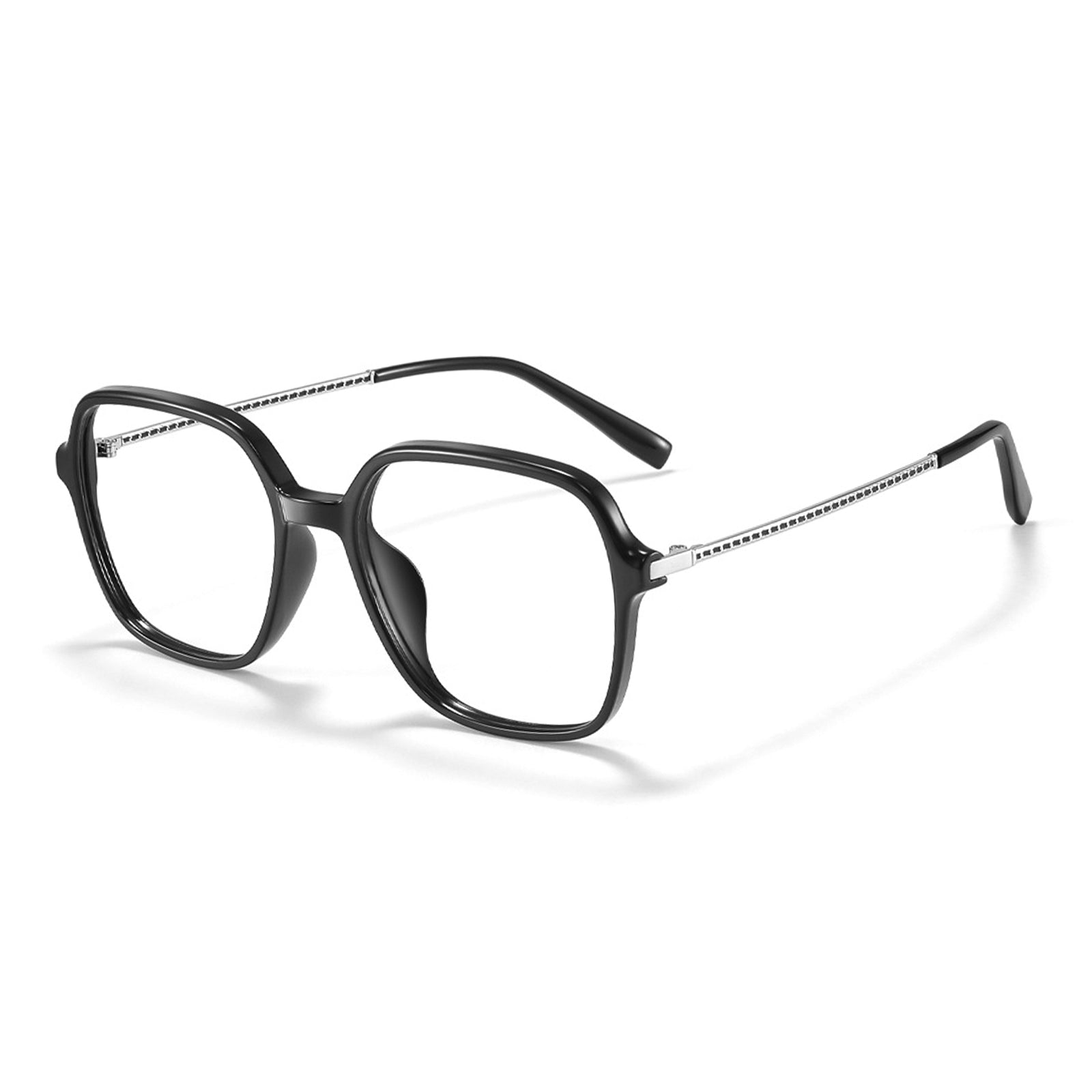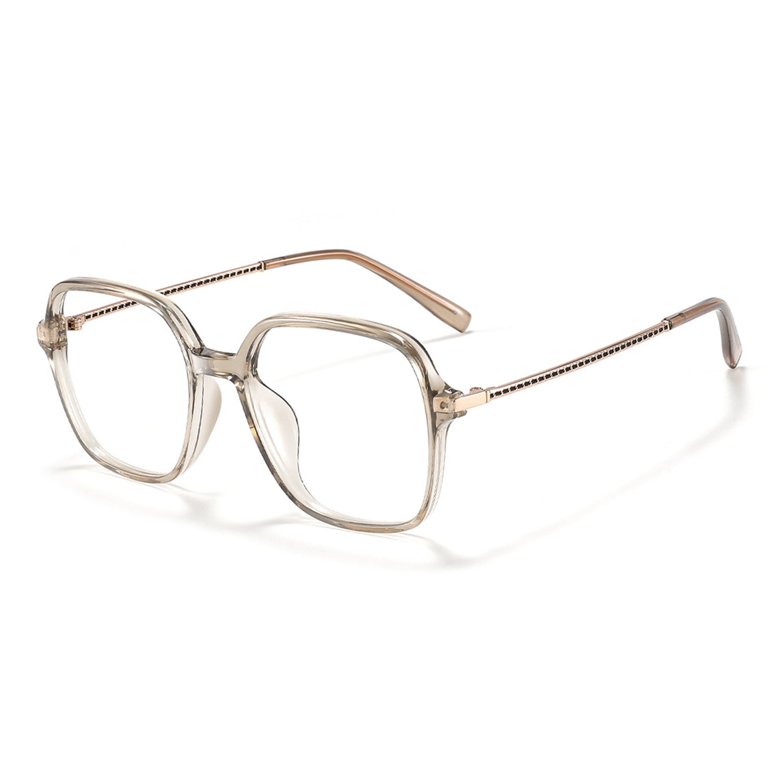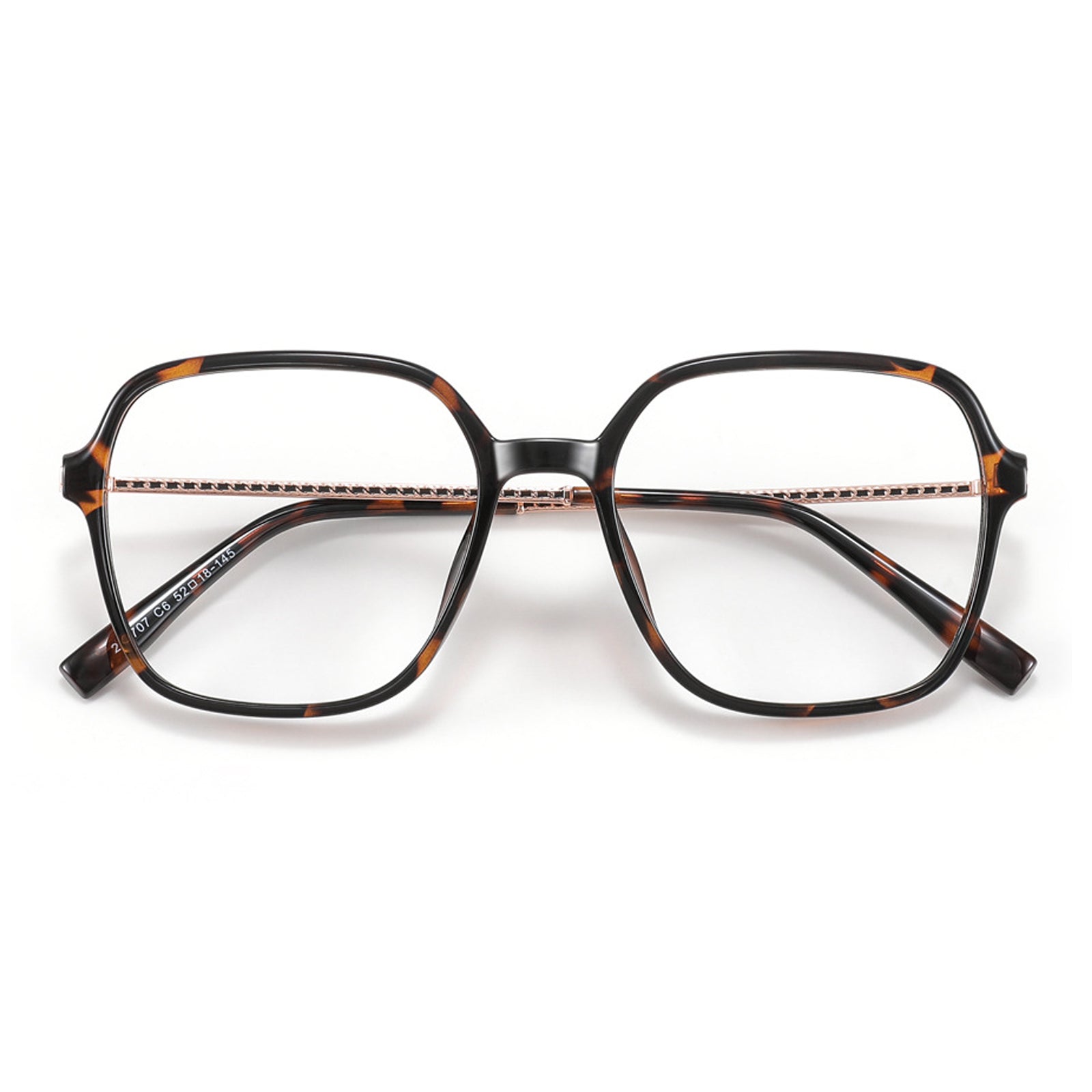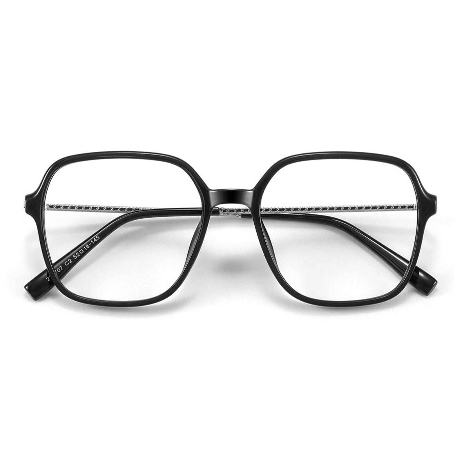 Unisex oversized square frames. perfect for all face shapes. Featuring slim. twisted wire temples. these glasses offer a stylish. elegant look for everyday wear.