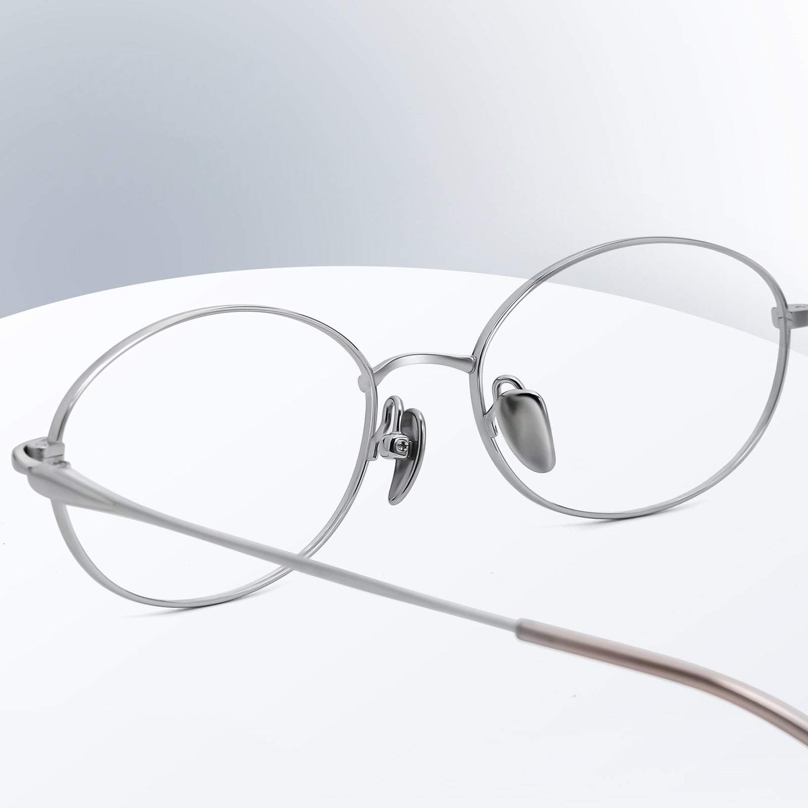 Titanium oval eyeglass frames featuring an ultra-lightweight and minimalist design. Clean. refined. and modern. these frames highlight natural elegance while delivering a sleek. effortless style for everyday sophistication.