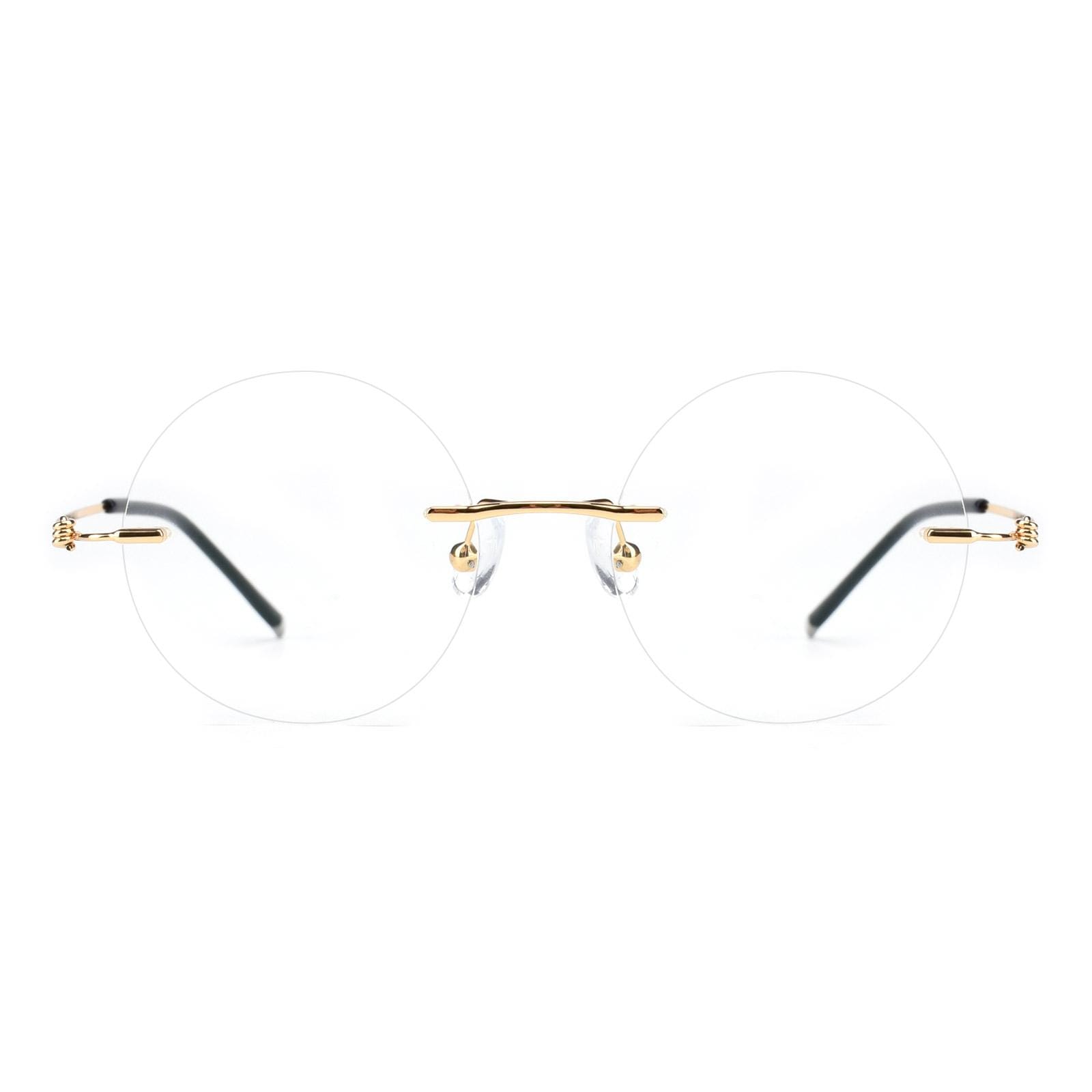Minimalist style round frame rimless glasses. Both men and women can wear them. and the ultra-light glasses provide a comfortable experience. There are two colors to choose from. silver and gold.