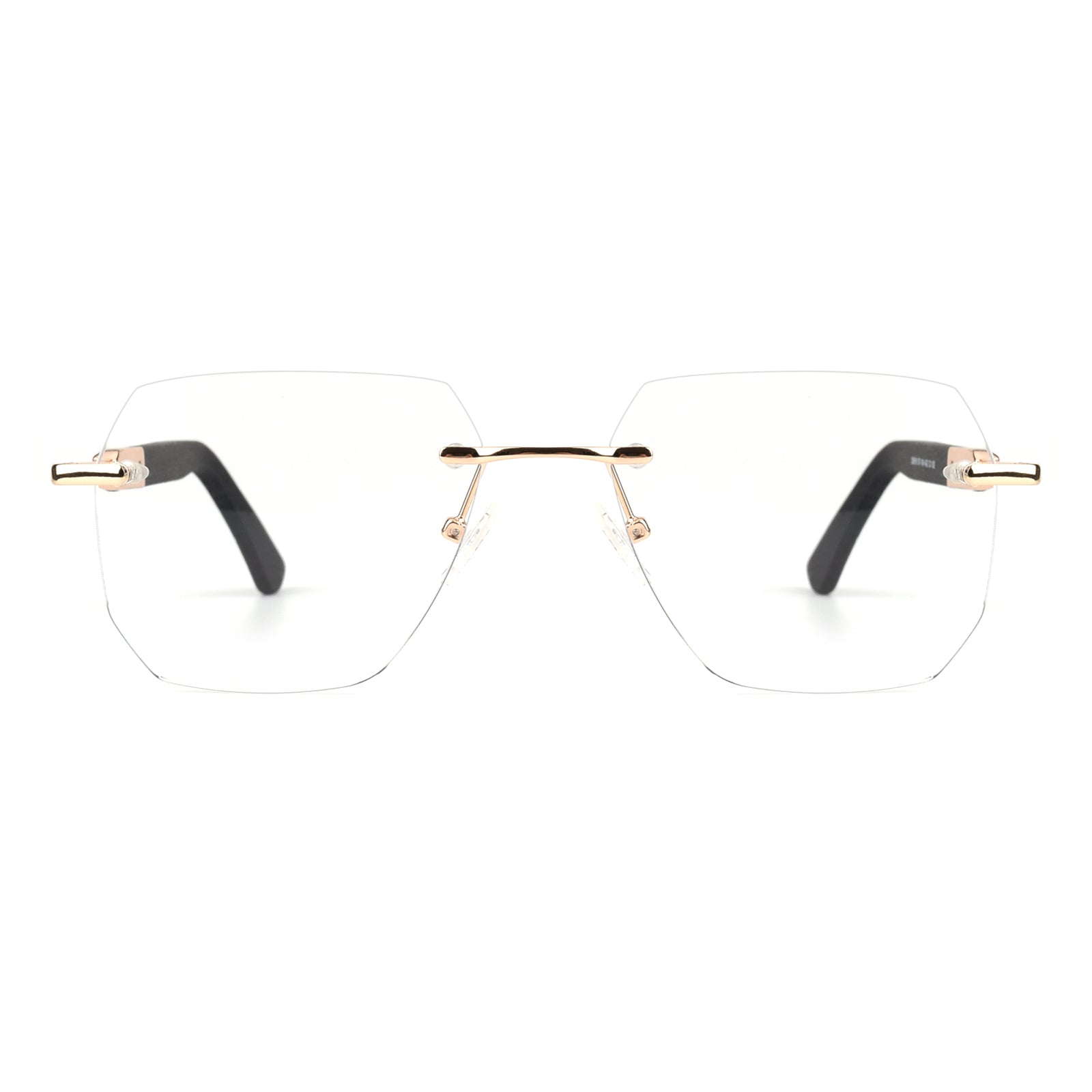 Gagnon is a more "aviator" shaped rimless glasses frame. Its lenses are designed according to the classical Ray-Ban® sunglasses. moreover. both temples are added with wooden texture tips. which make it a really special frame could't be found the similar ones in other places.