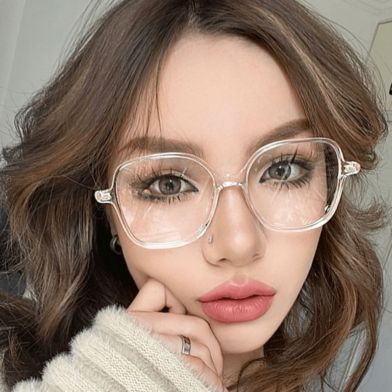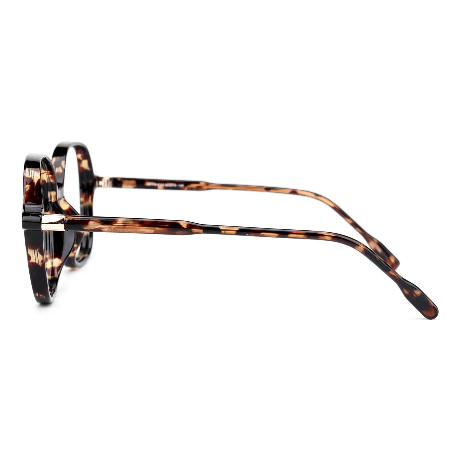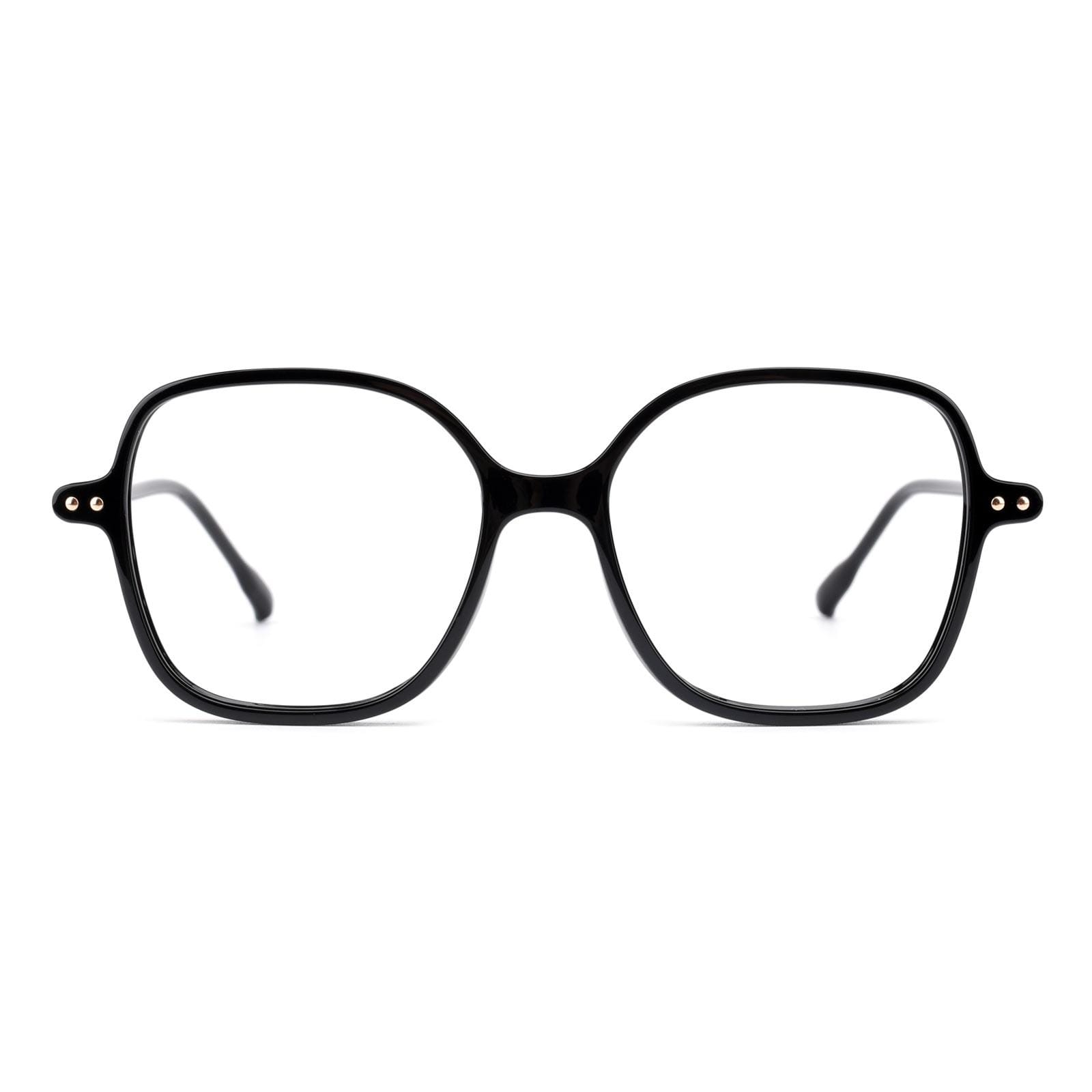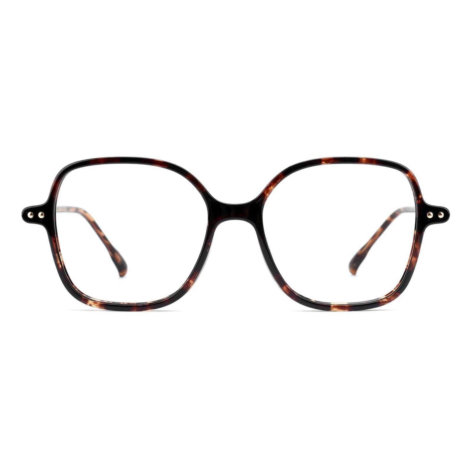 Vintage squared glasses with metal polka dots on the edge of the lenses give them a unique design. There are three colors to choose from. tortoiseshell clear and black.