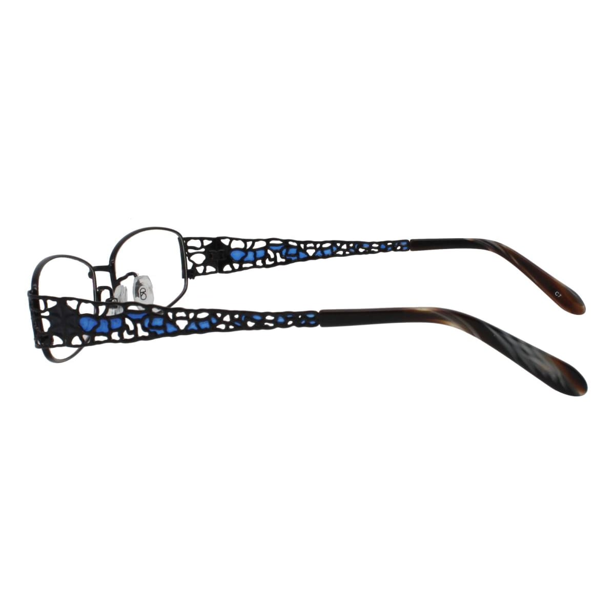 Glasses Goblinbon is a rectangle and elegant frame crafted from metal.It features hollow-carved design and add comfort to style with adjustable nose pads.