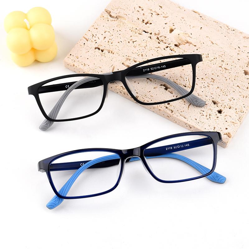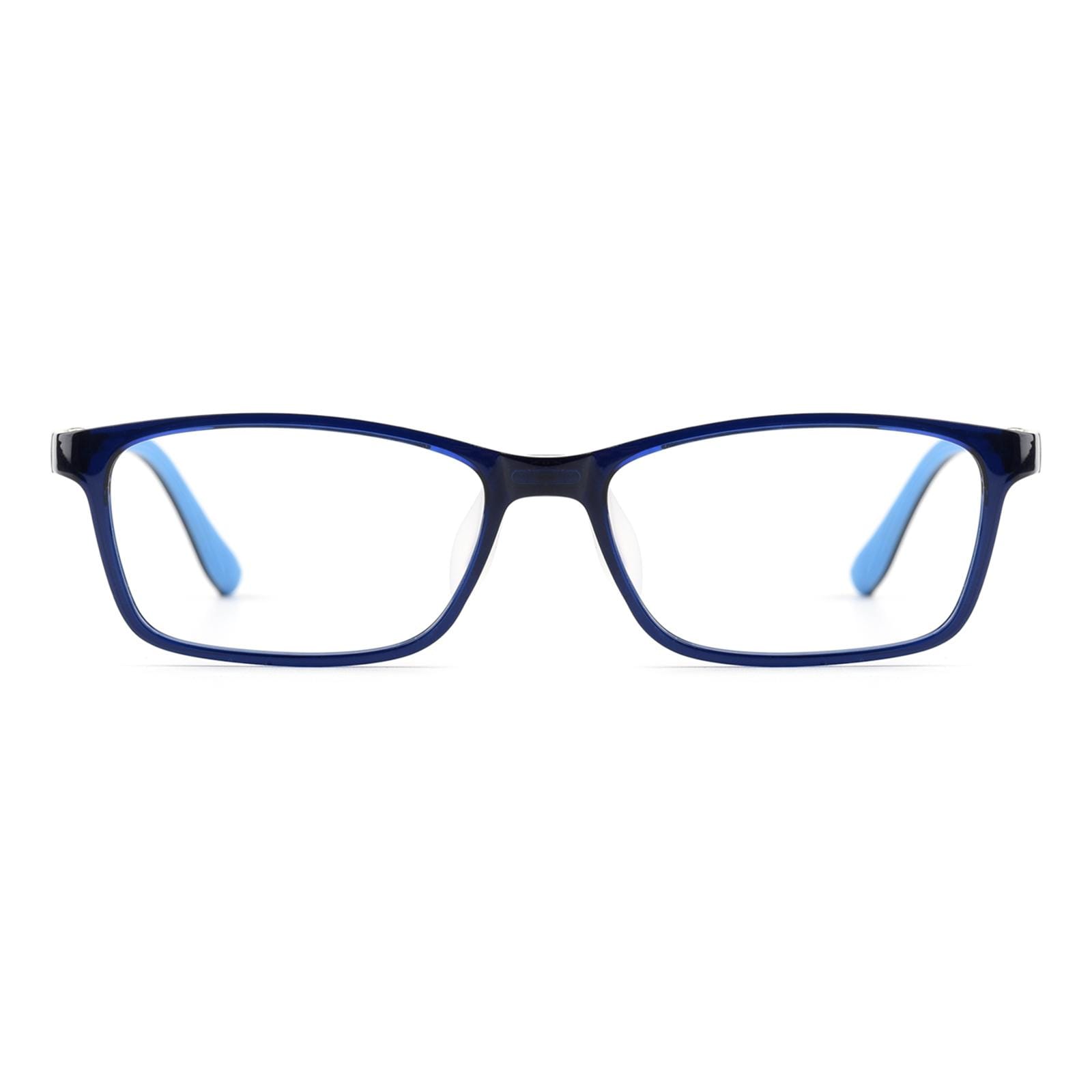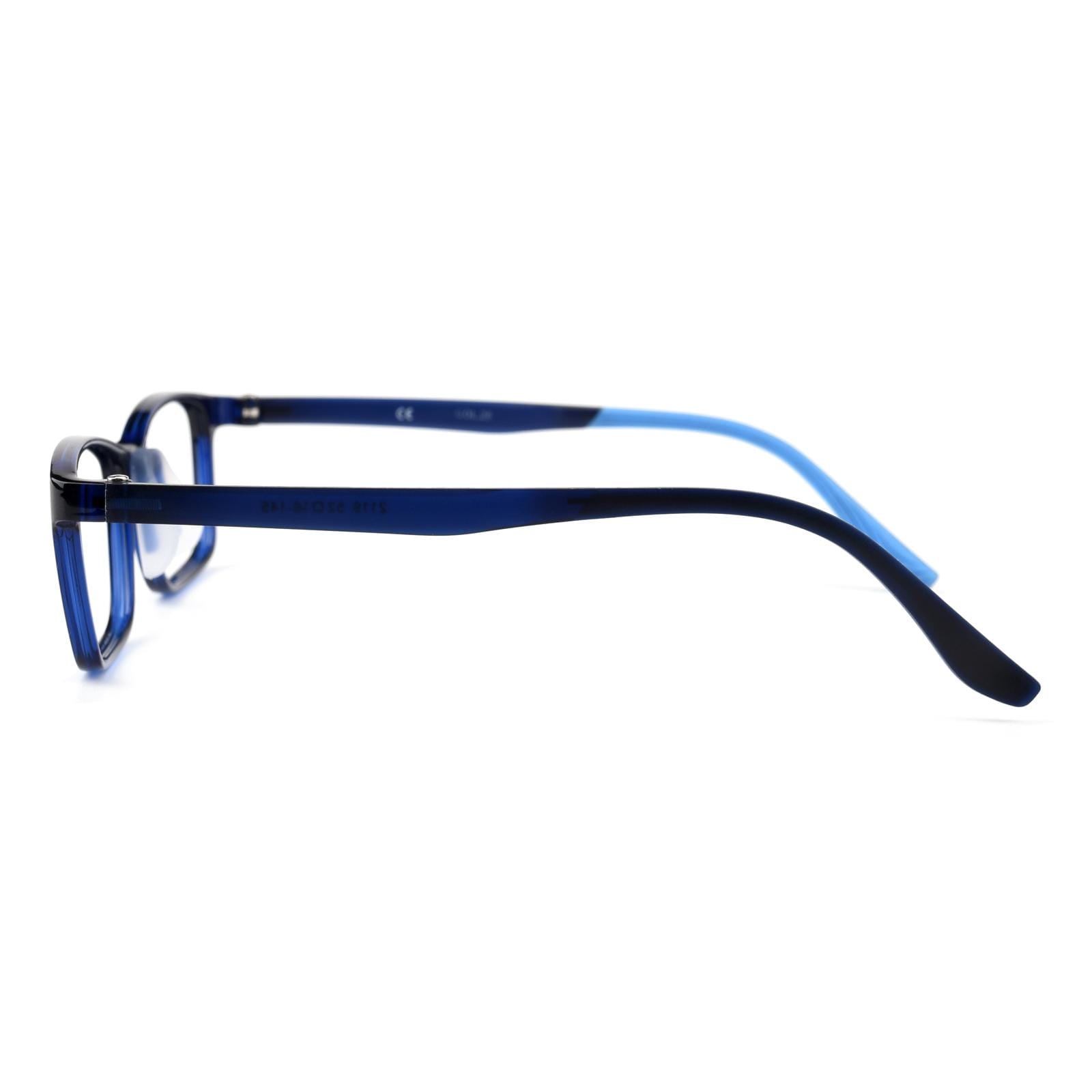 Greer is a kids rectangle frame made with a combination material of TR90 and silicone on legs. Available in blue and black. it ensures durability and comfort for active youngsters. Designed to withstand play while maintaining a stylish look.
