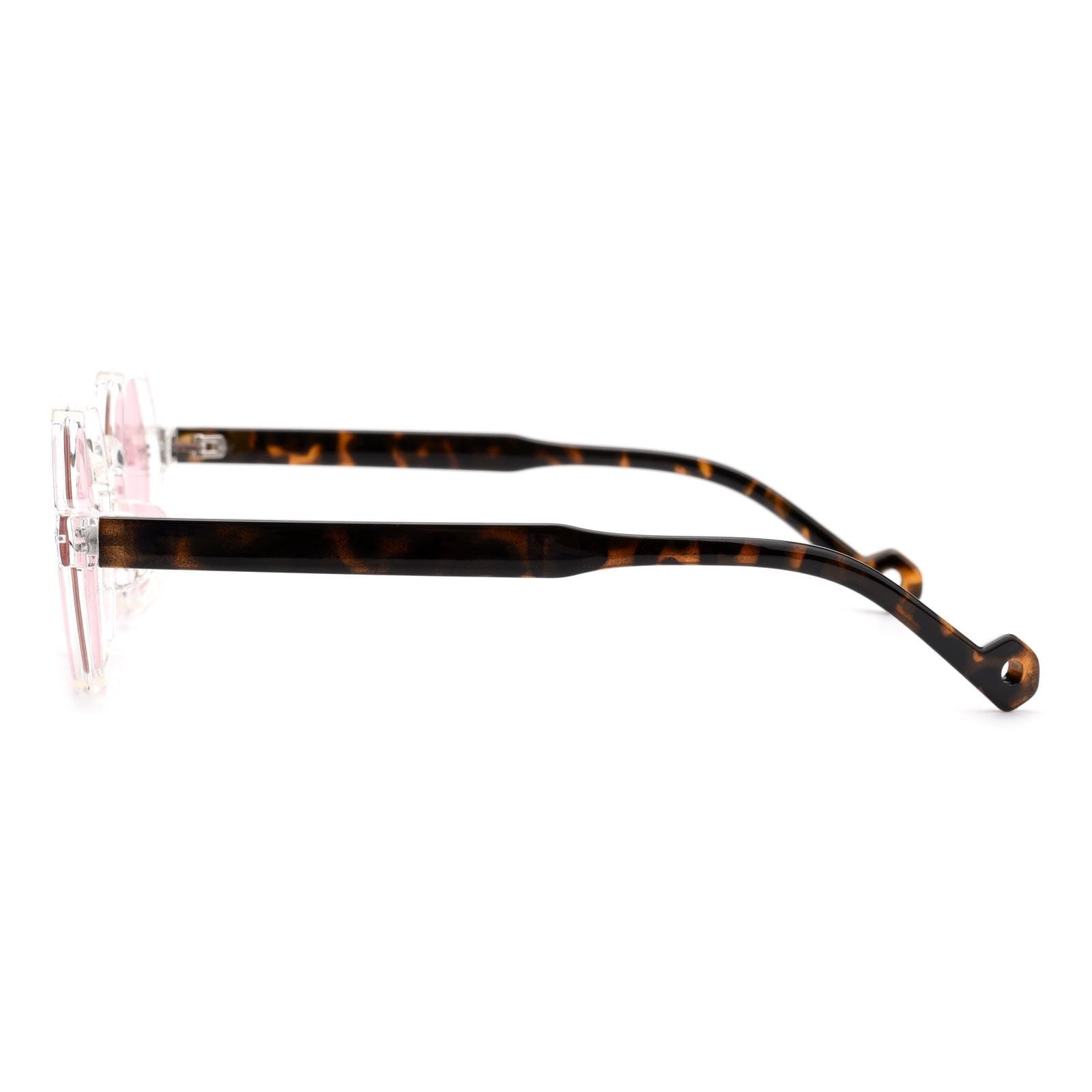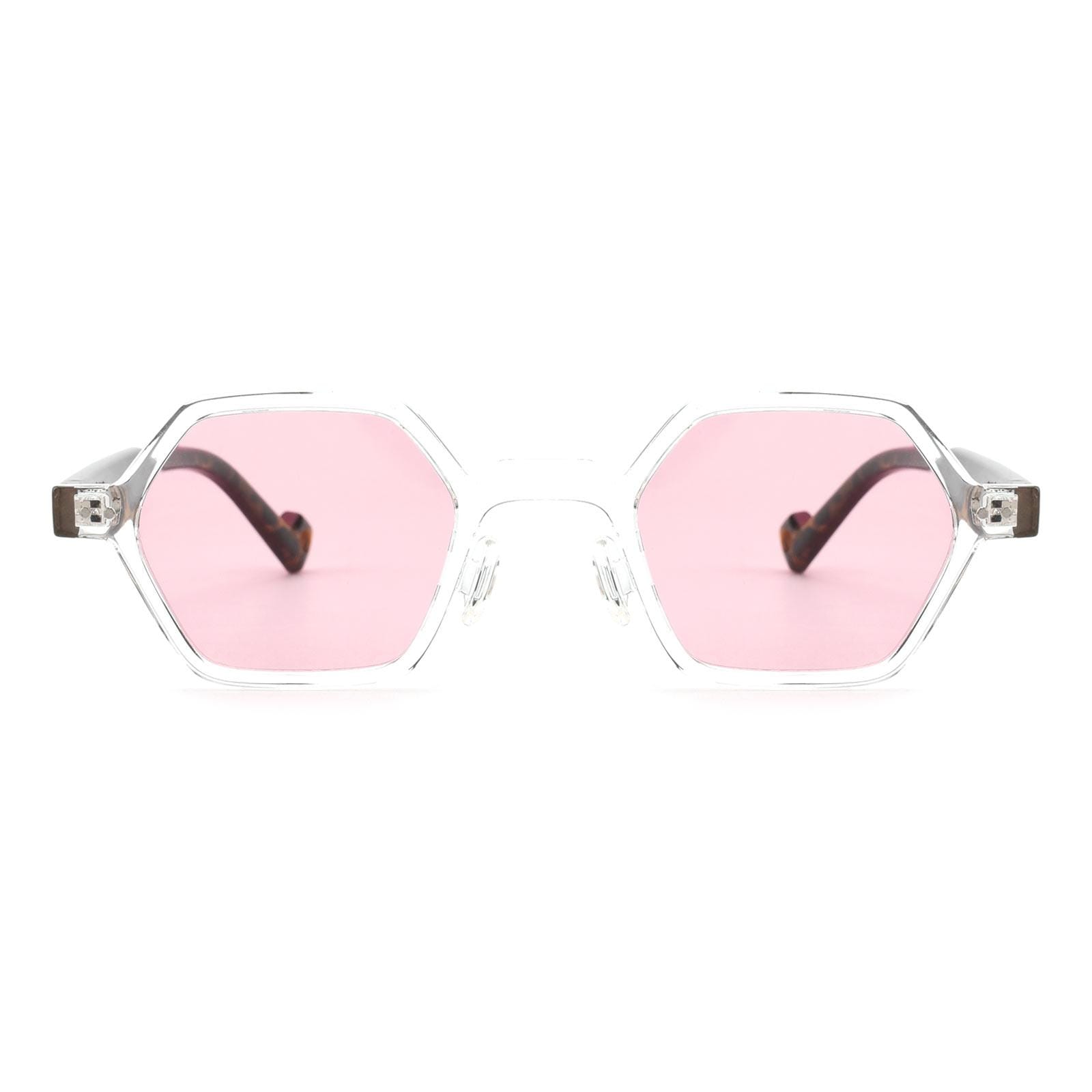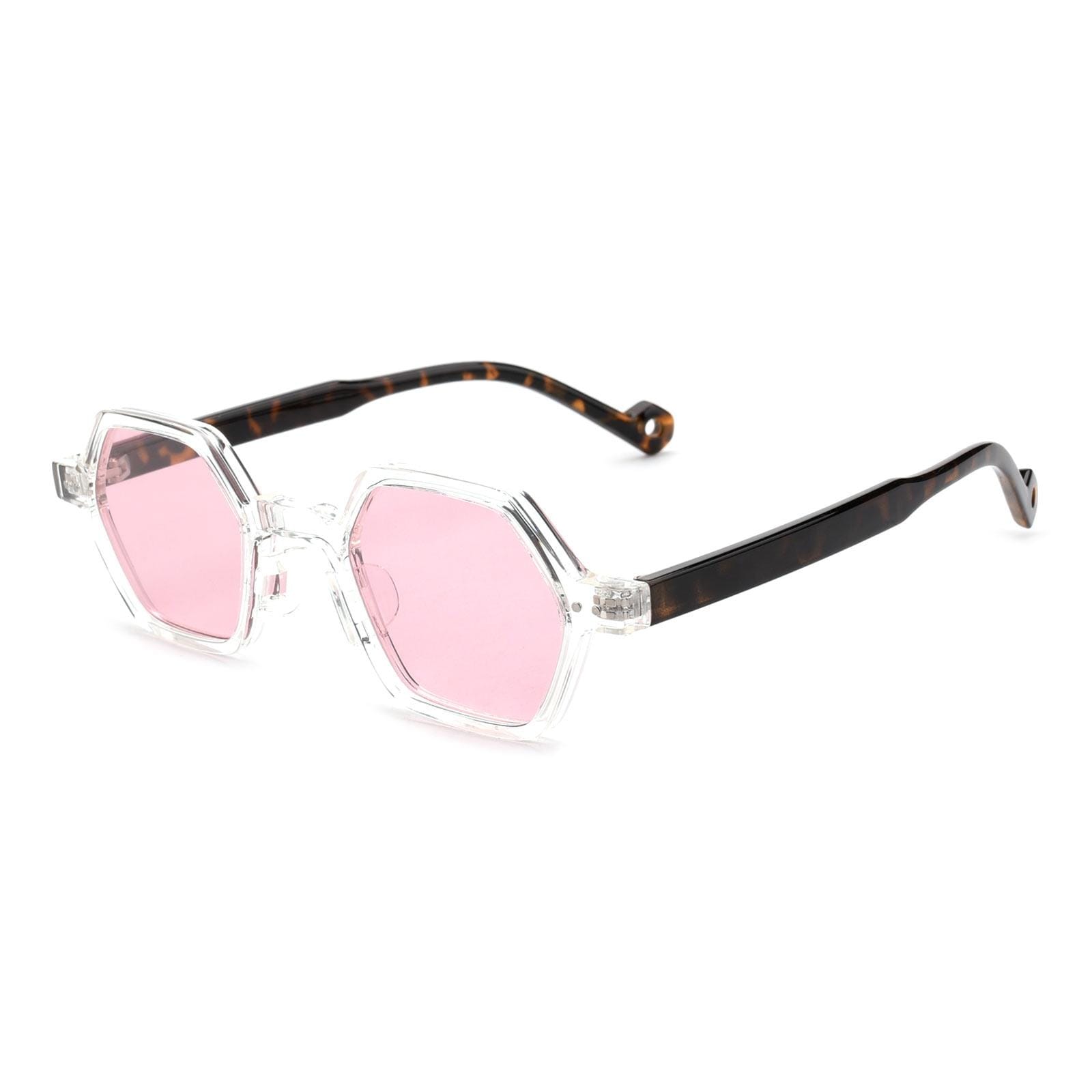 Introducing our Kavon hexagonal sunglasses. featuring a unique transparent frame and stylish tortoise shell legs. The hexagonal shape adds a modern touch to a classic silhouette. while the transparent frame provides a sleek and sophisticated look. The tortoise shell legs offer a comfortable fit and complement the overall design of the sunglasses. The Kavon sunglasses are perfect for both men and women looking for a versatile and stylish accessory for any occasion. Upgrade your eyewear game with our fashionable Kavon hexagonal sunglasses.
