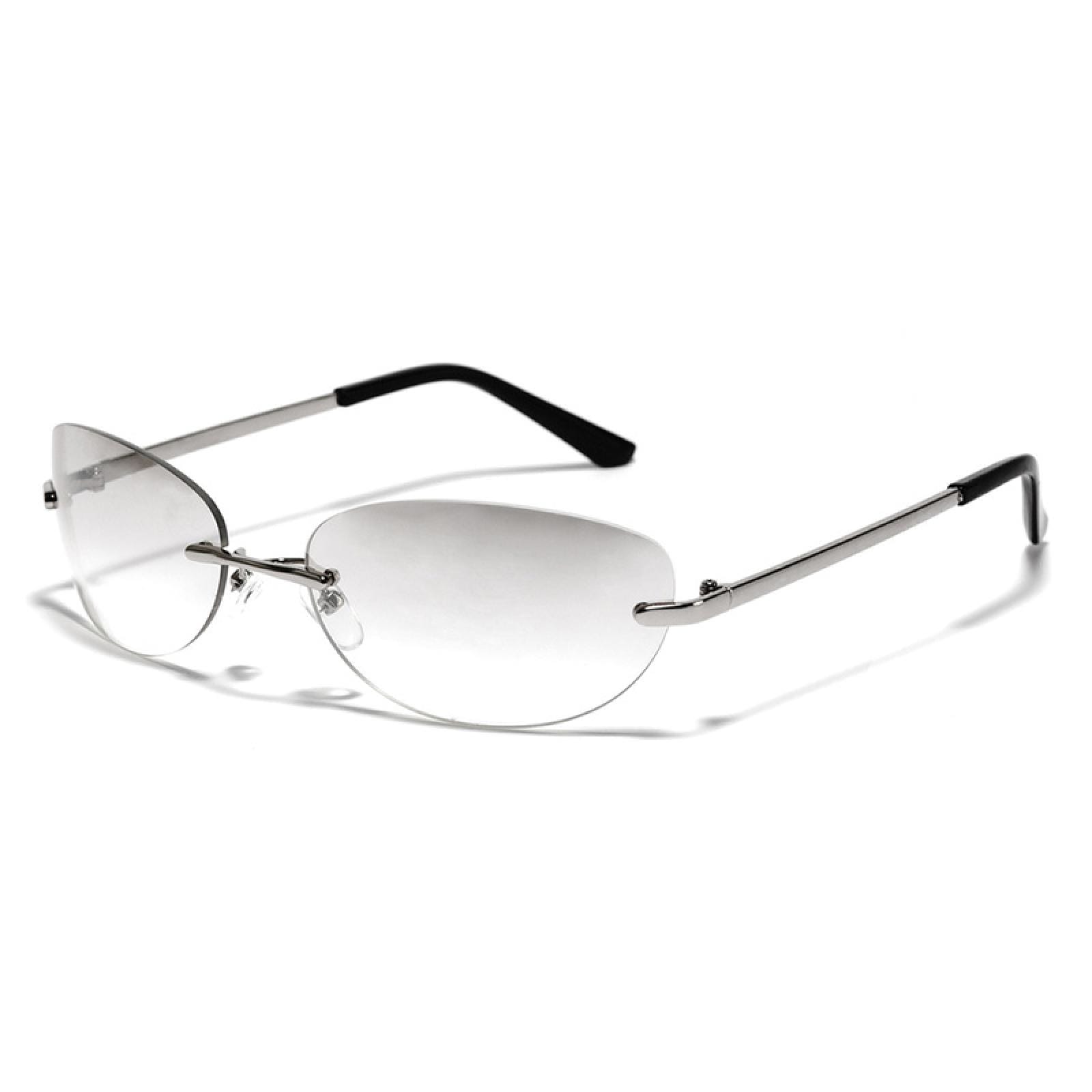 Embark on a journey of futuristic style with our boundary-pushing rimless wraparound sunglasses. These cutting-edge shades feature a sleek and seamless design that wraps around your face. exuding an air of boldness and confidence. The mercury-tinted lenses add a touch of mystique. while the comfortable nose pads ensure a perfect fit. Embrace the avant-garde and elevate your fashion game with these statement-making rimless sunglasses that redefine modern elegance.