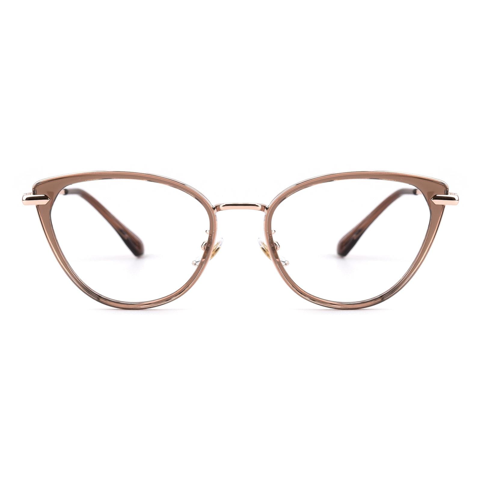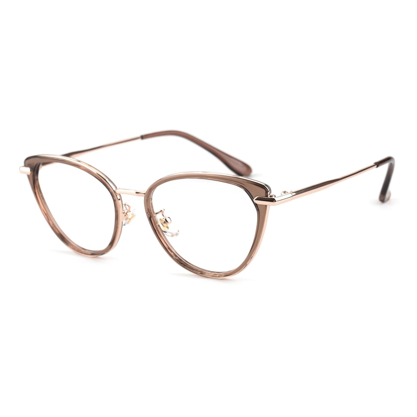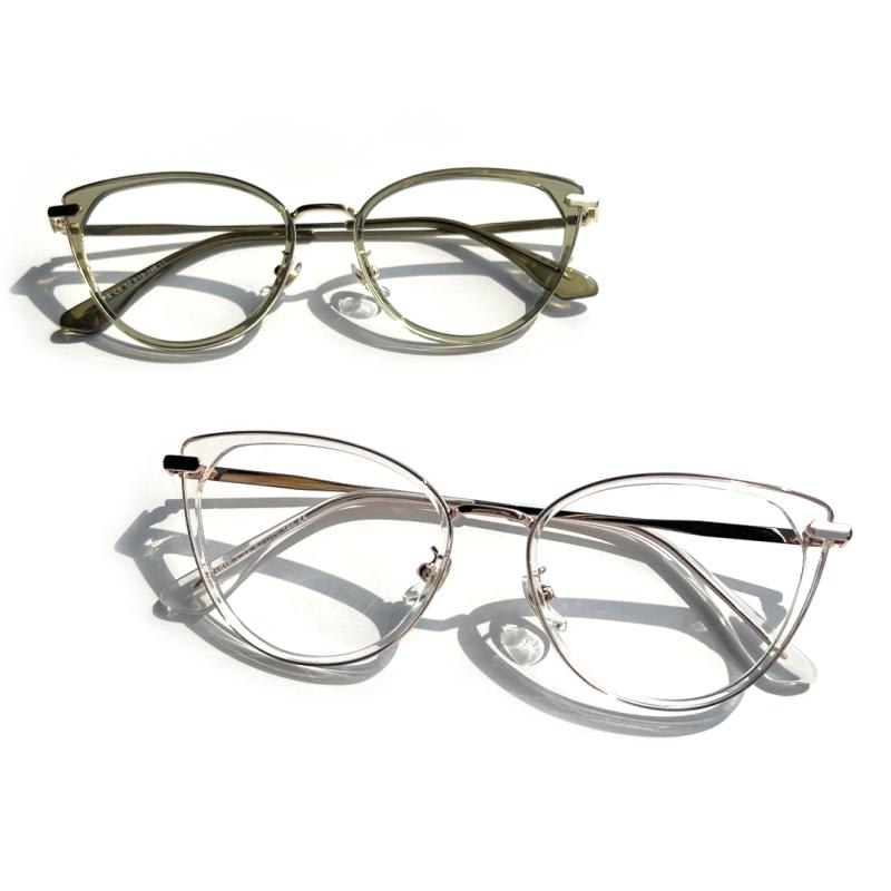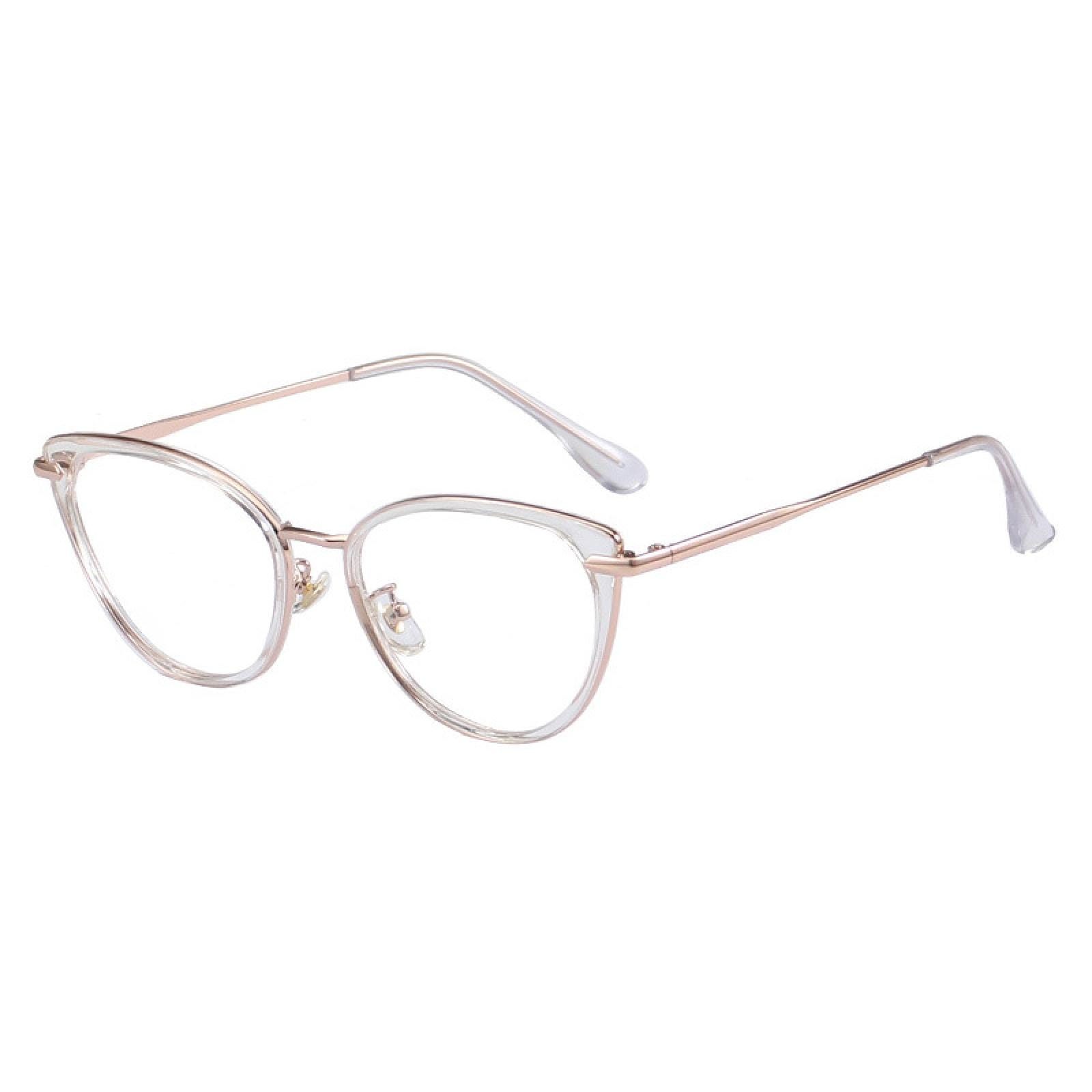 Embrace a touch of ethereal allure with our captivating semi-transparent cat-eye glasses. These enchanting frames feature a delicate balance of sophistication and playfulness. The cat-eye shape lends a hint of vintage elegance. while the semi-transparent design adds a subtle and intriguing charm. With the addition of a comfortable nose pad. these glasses provide a perfect fit for all-day wear. Step into a world of timeless style and let your unique personality shine with these mesmerizing cat-eye glasses.
