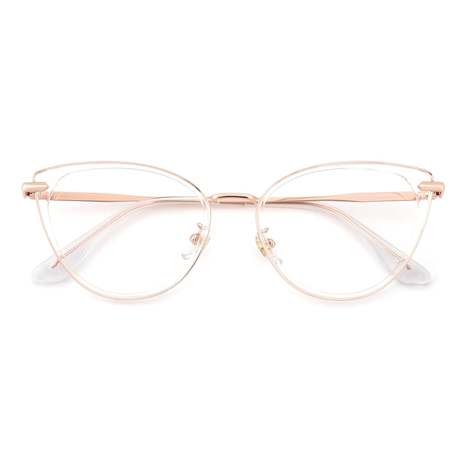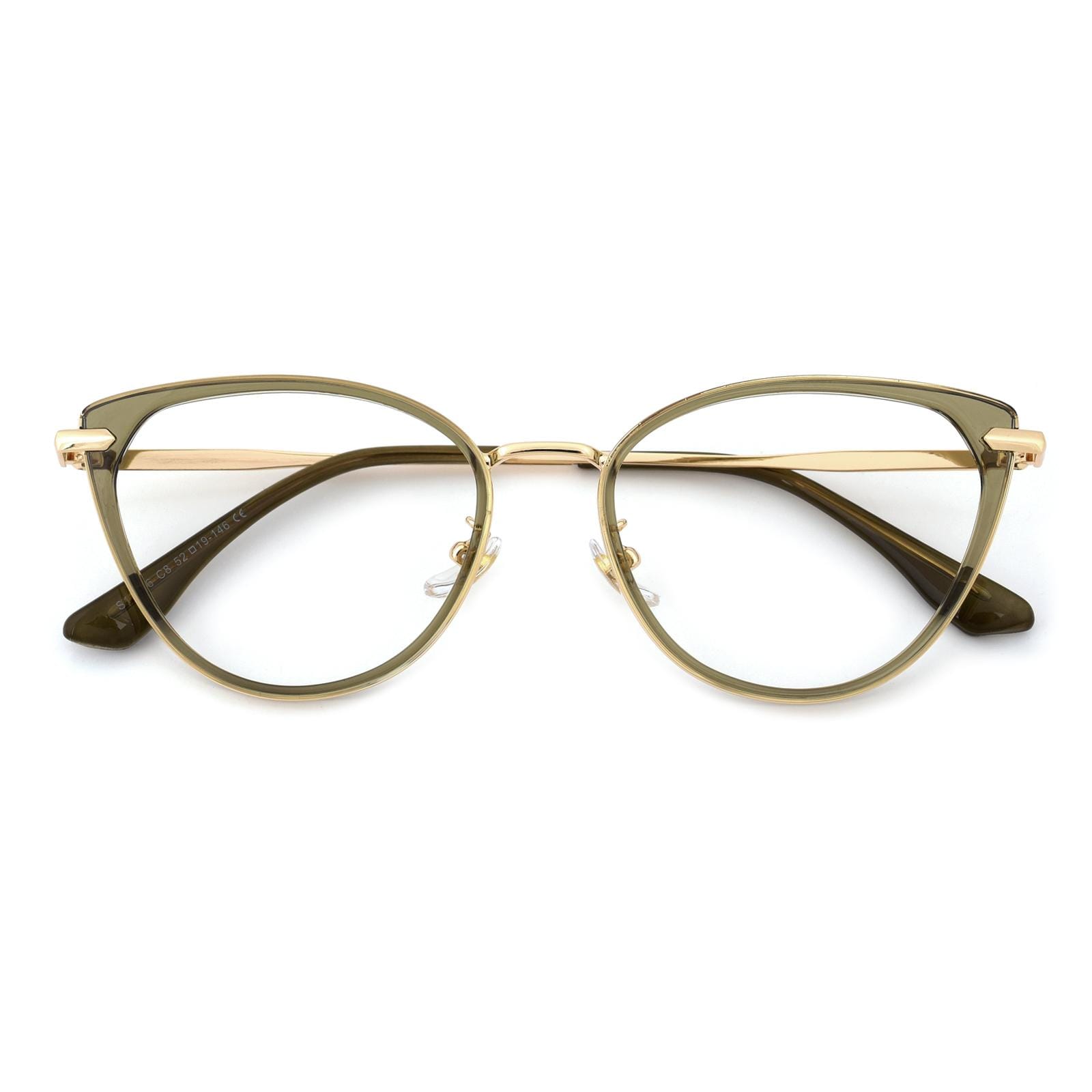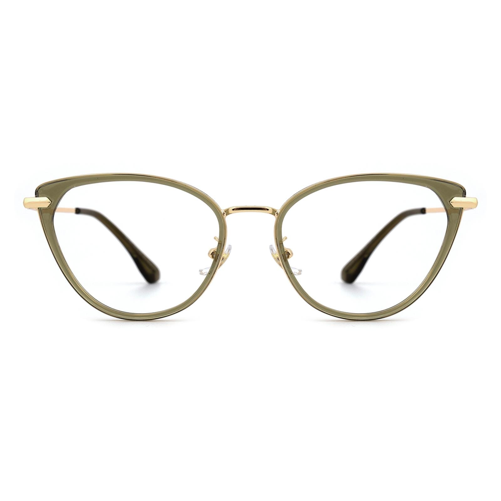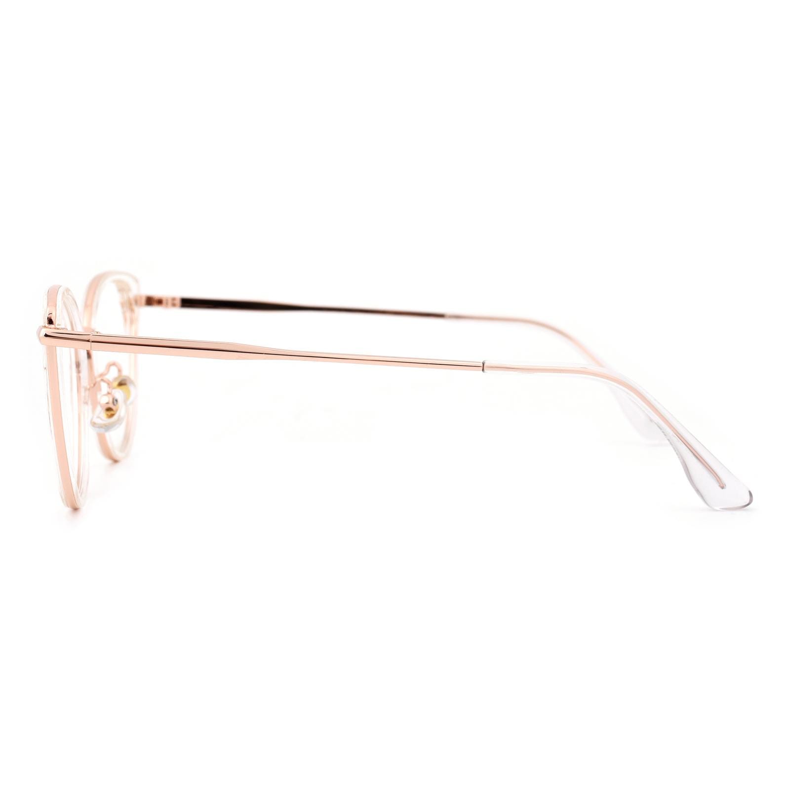 Embrace a touch of ethereal allure with our captivating semi-transparent cat-eye glasses. These enchanting frames feature a delicate balance of sophistication and playfulness. The cat-eye shape lends a hint of vintage elegance. while the semi-transparent design adds a subtle and intriguing charm. With the addition of a comfortable nose pad. these glasses provide a perfect fit for all-day wear. Step into a world of timeless style and let your unique personality shine with these mesmerizing cat-eye glasses.