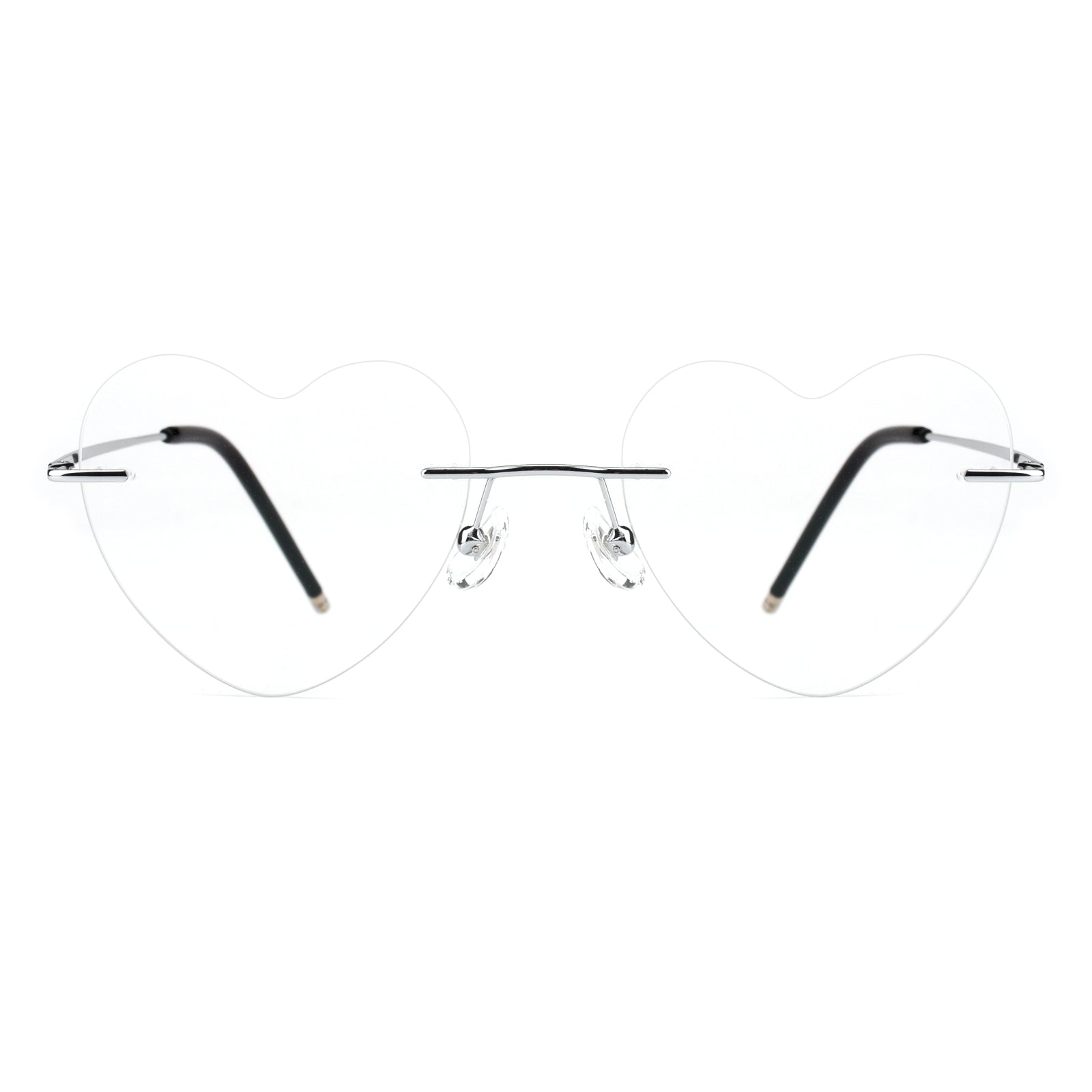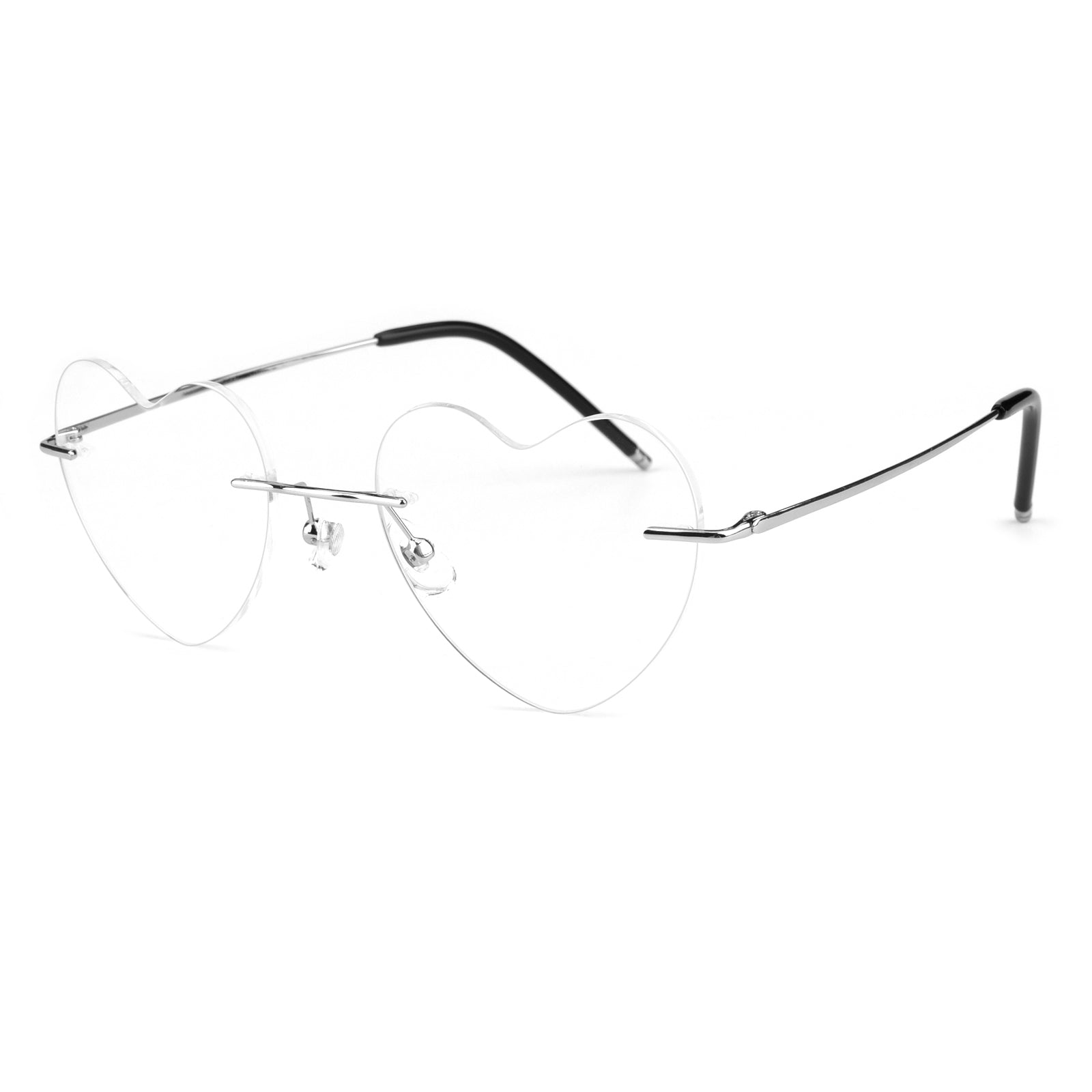 Heart-shaped rimless glasses are on trend. Special for Valentine's Day. Can be worn with tinted or colorless lenses.
