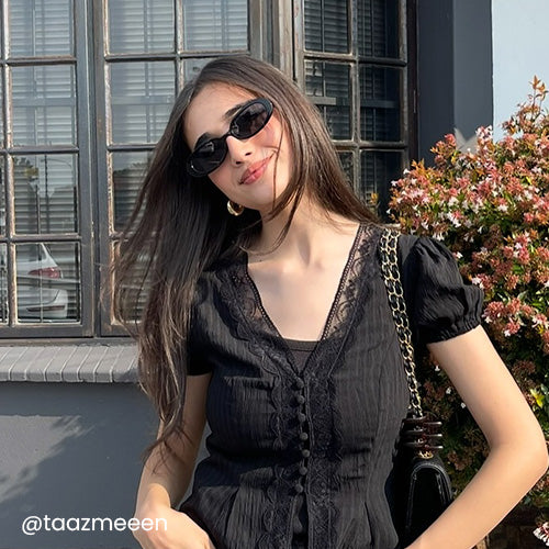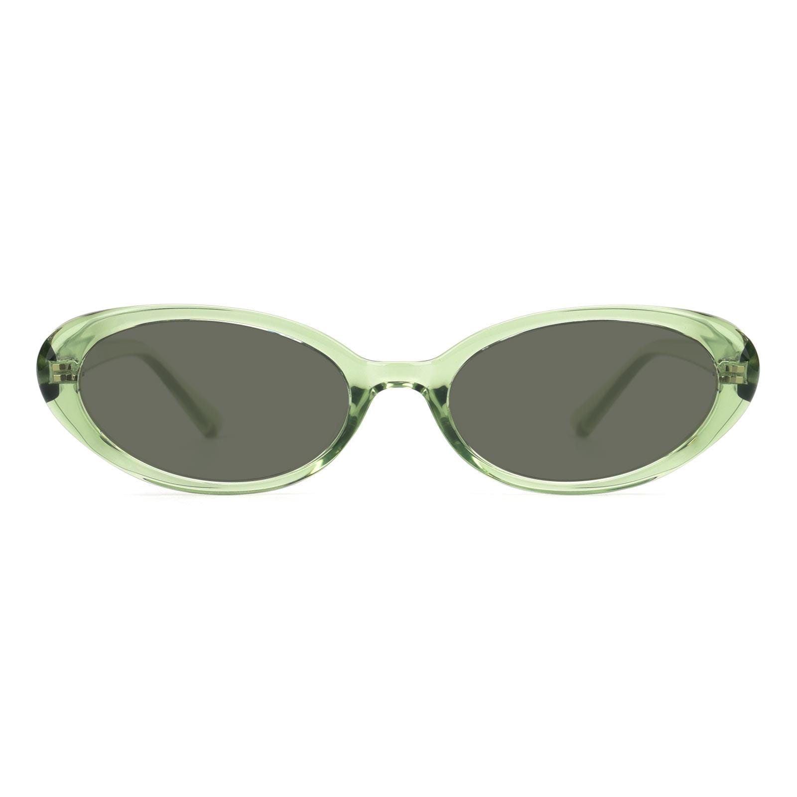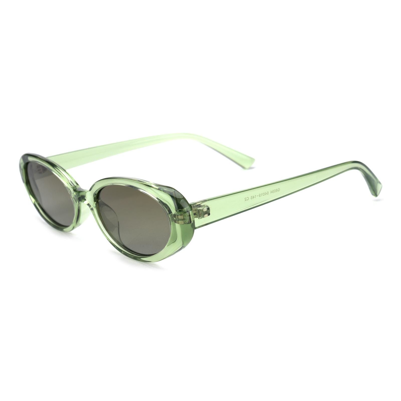 Oval cat-eye sunglasses are the must-have sunglasses for everyone these days. There are two colors to choose from. the versatile black and the refreshing transparent green.