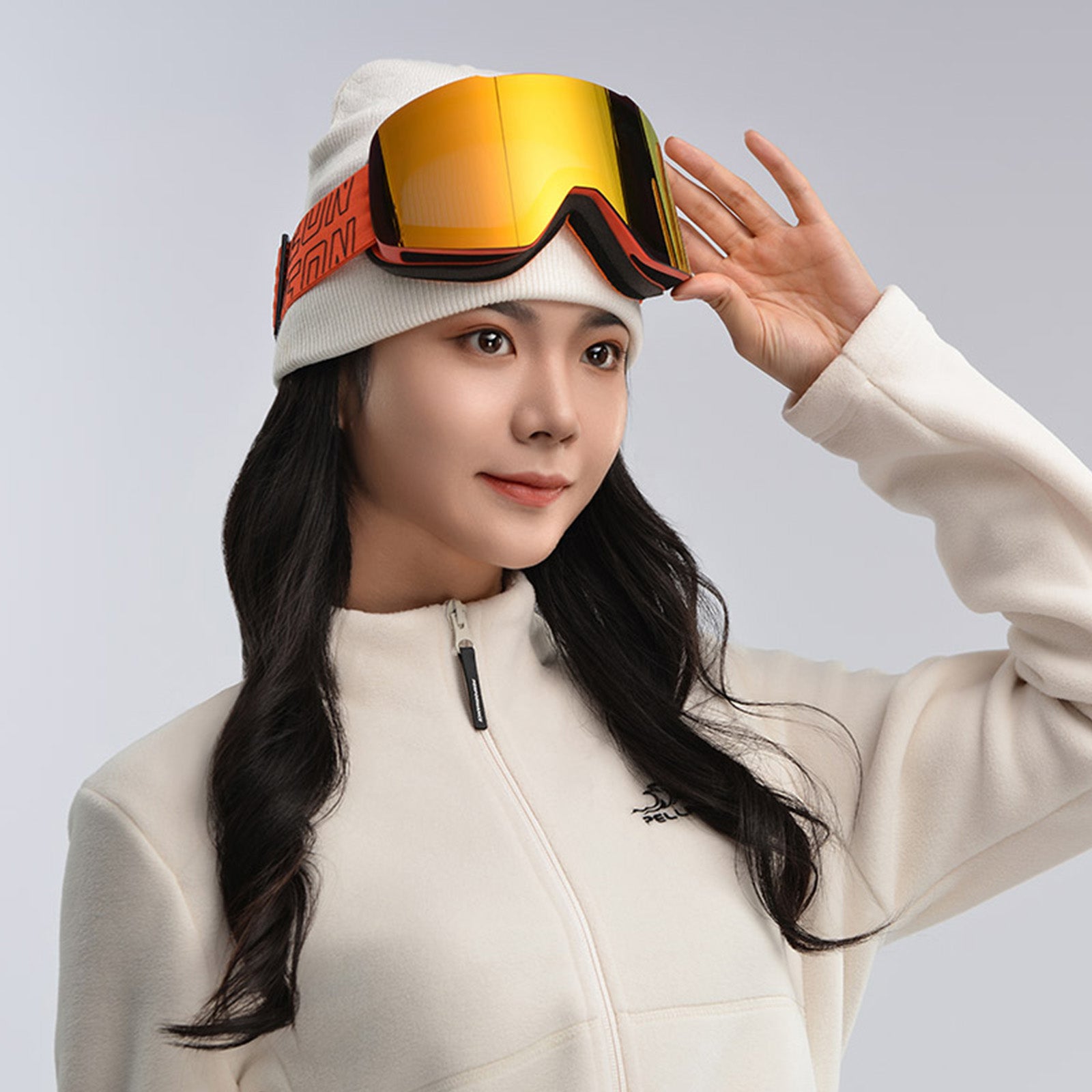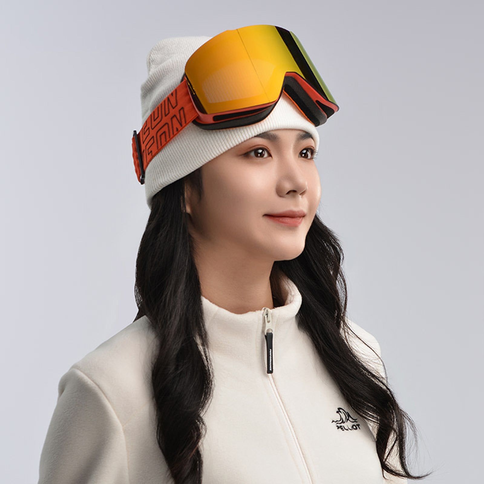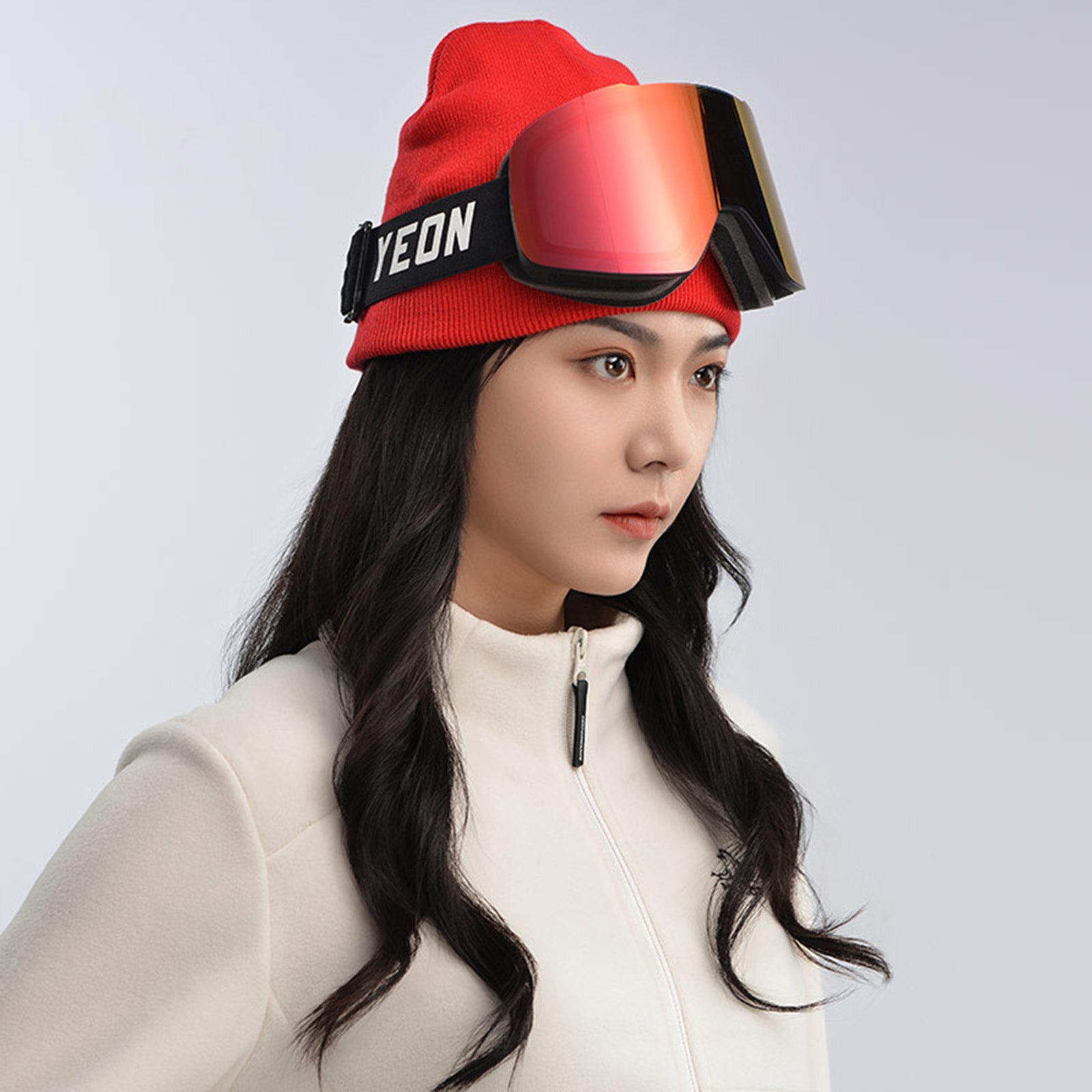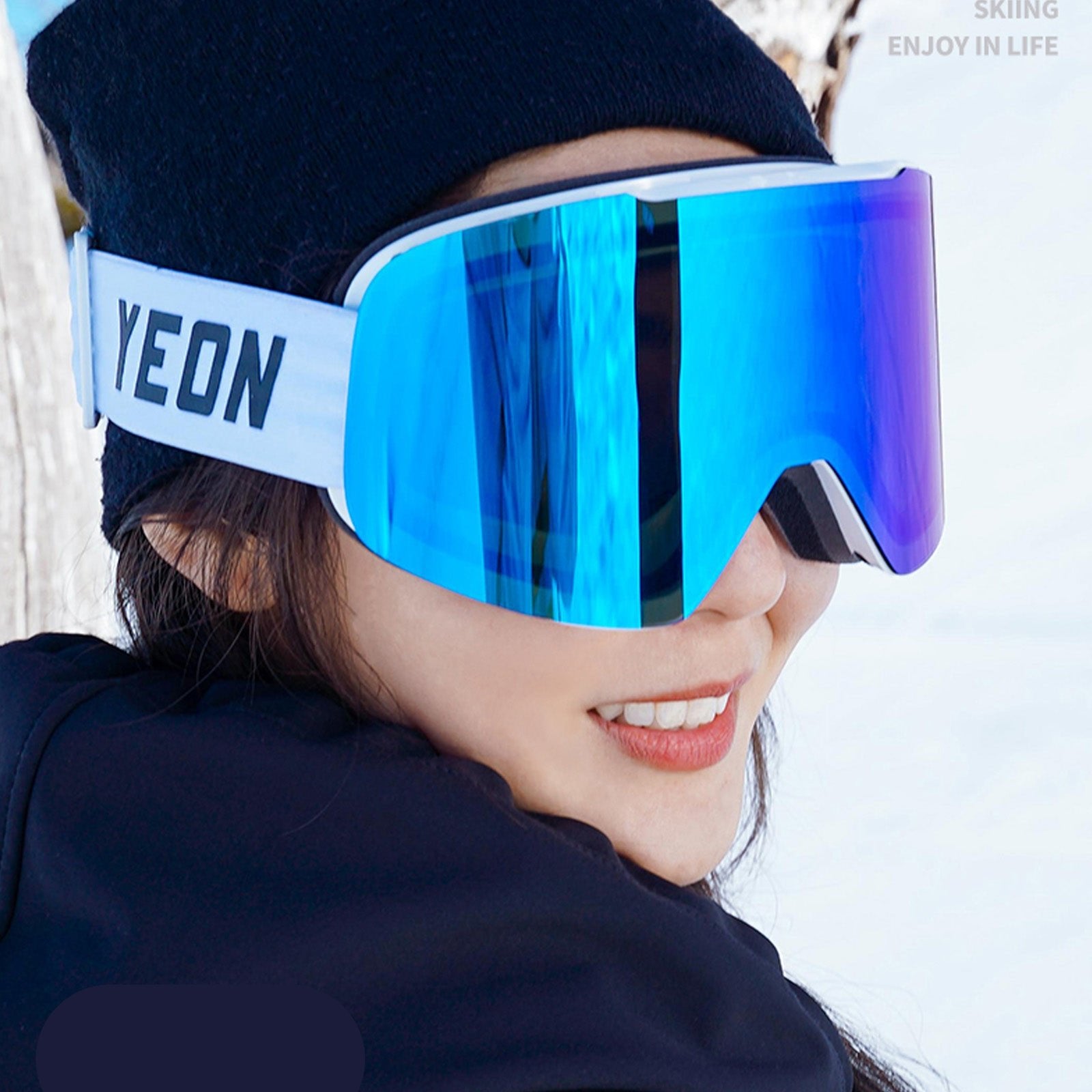 Snoh Prescription Snowboard Goggles designed with durable impact-resistant lens are with 100% UV protection mirrored coating; and the inner lens crafted in Italy. features PRO long-lasting anti-fog materials. ensuring a clear and fog-free skiing experience.