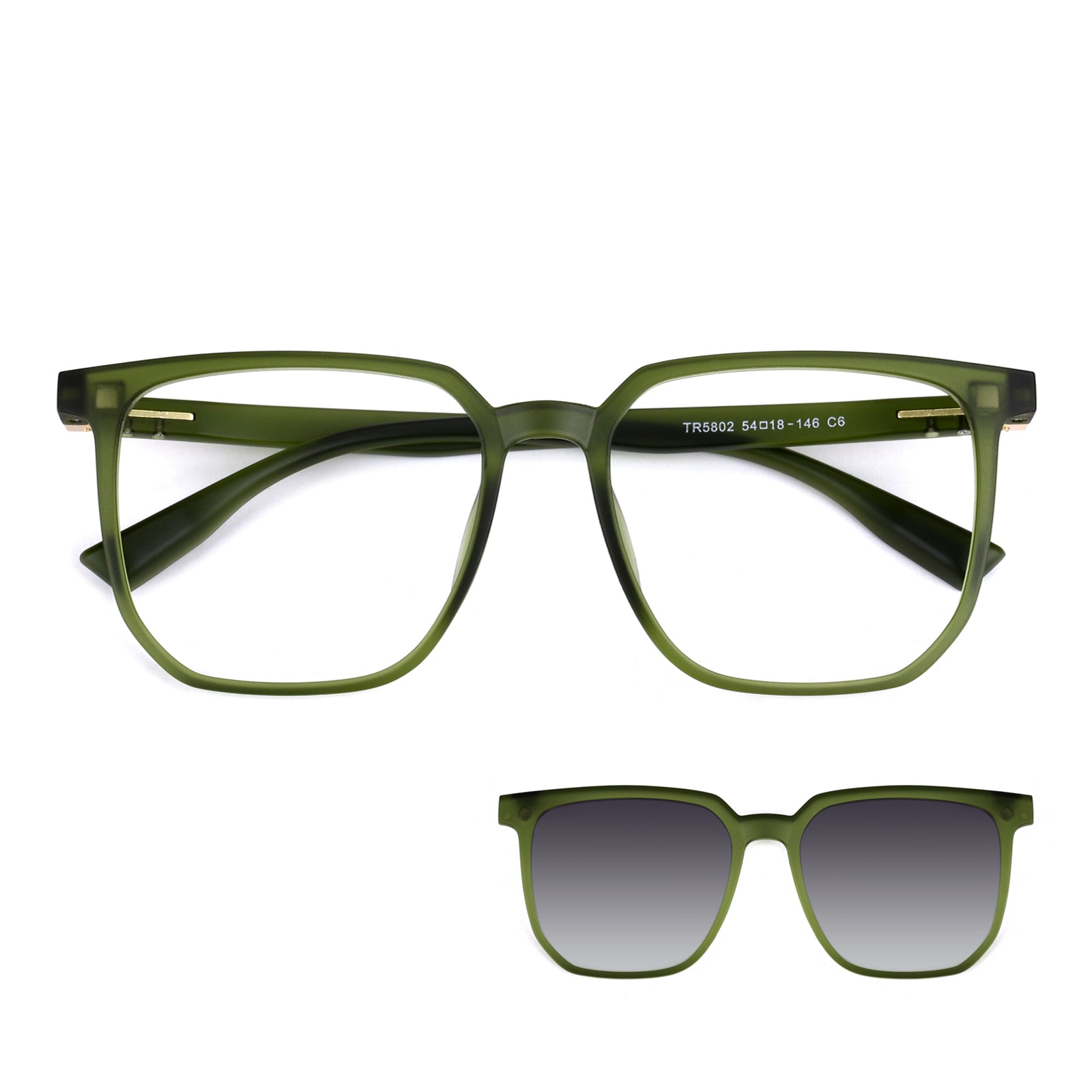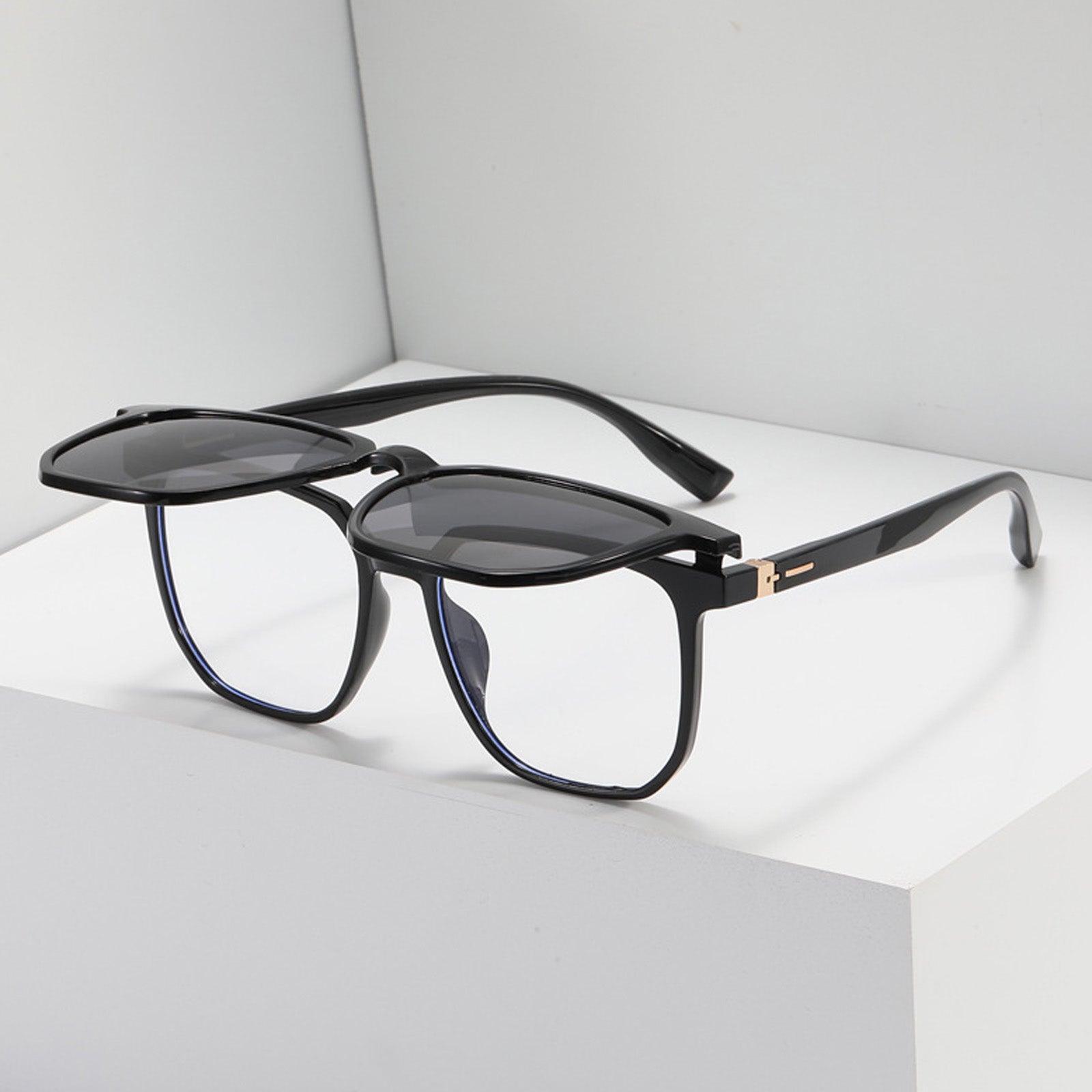 If you haven't found the right magnetic sunglasses yet. this square one is definitely worth a look. Its minimalist design comes in three colors: black. orange. and green.